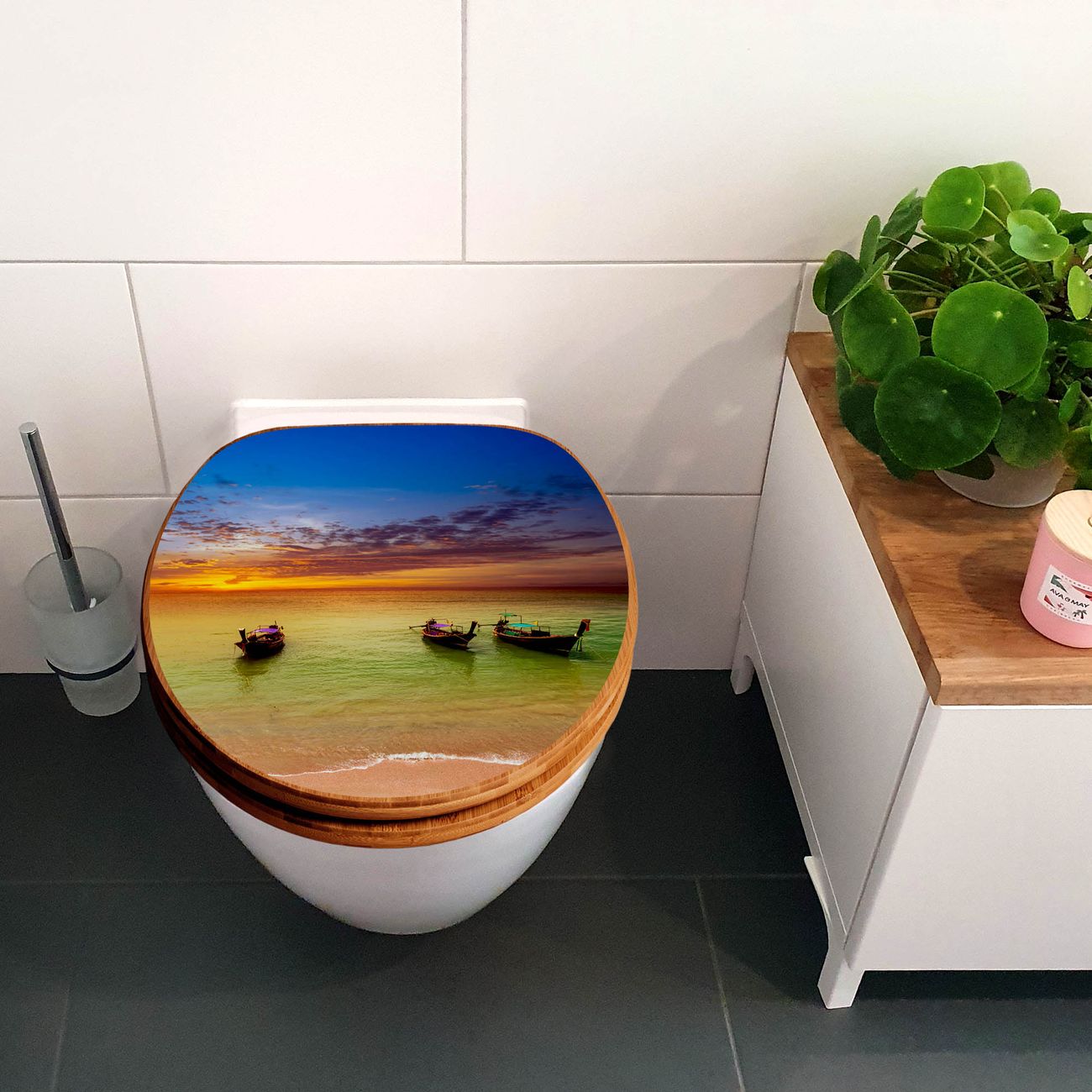 Ihr WC-Deckel wird in Sachsen in einer kleinen Manufaktur von Hand veredelt. Die Motivfolie ist lösungsmittelfrei und schutzlaminiert für einen langen Halt. Viel Freude wünscht Ihnen banjado.
