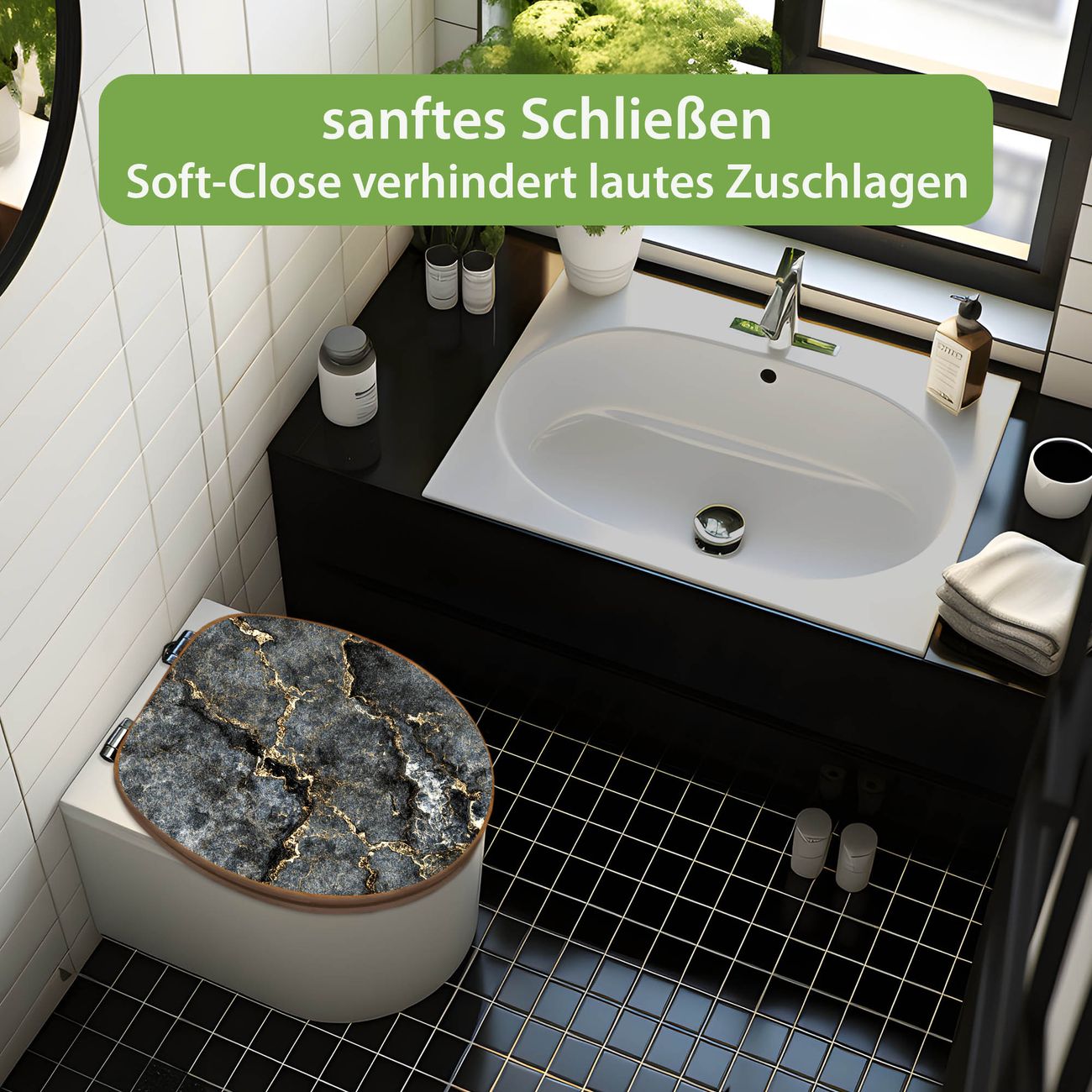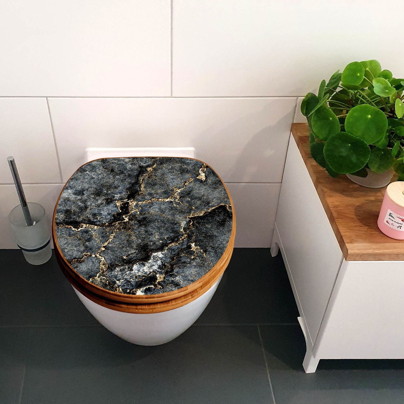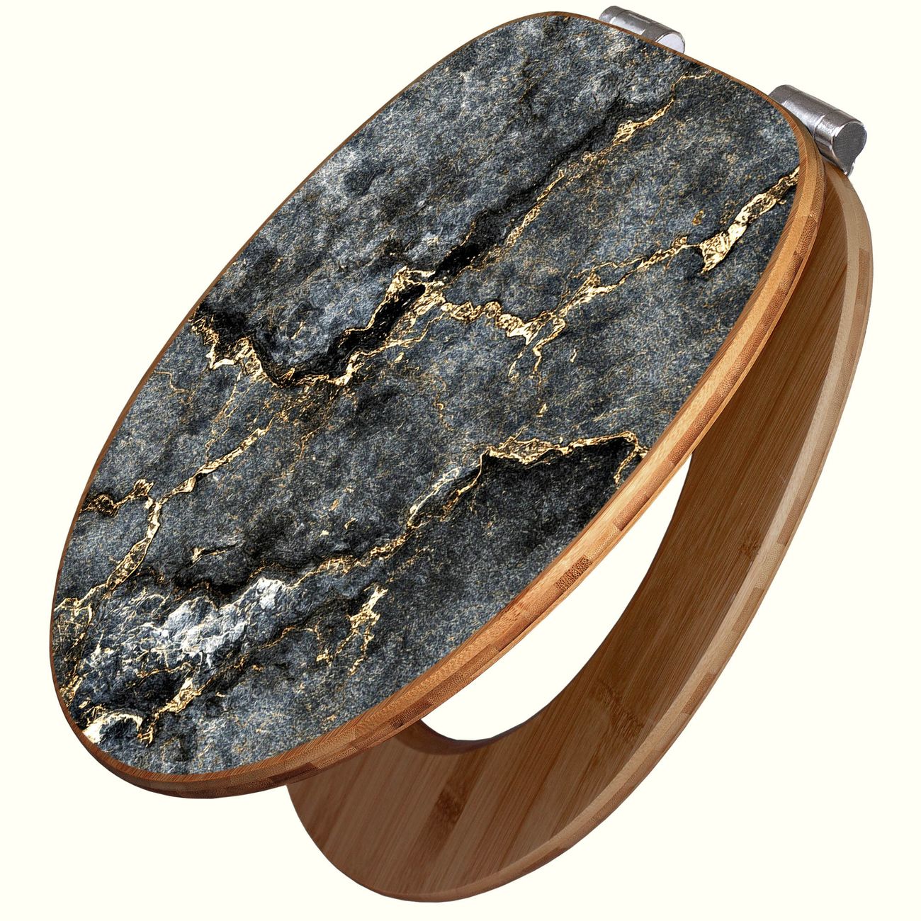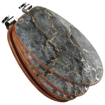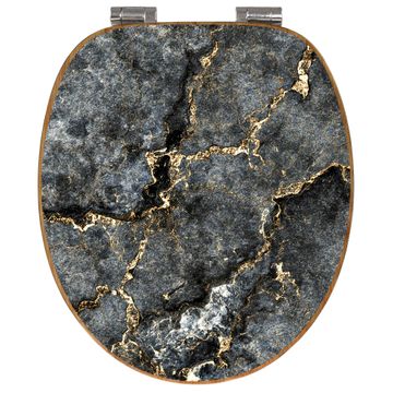 Design WC-Sitz Bambus Absenkautomatik Motiv grauer Marmor mit Gold 2
