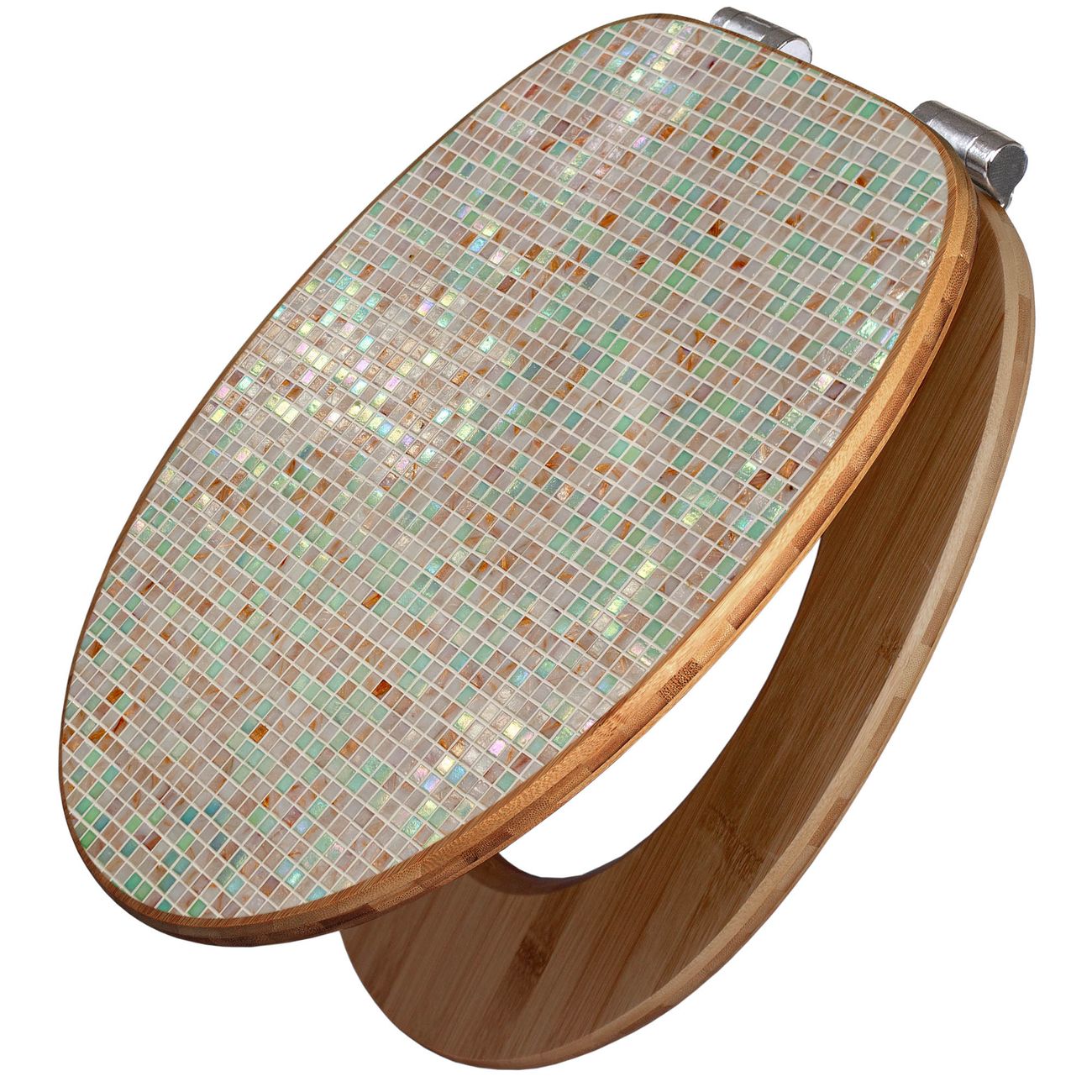 Mit dem banjado Toilettensitz in Bambus verbinden Sie Design und Funktionalität. Sie erhalten den WC-Sitz mit bewährter Holz Qualität und Universal Scharnieren. Das Motiv Motiv Grüne Fliesen besteht aus einer schutzlaminierten Motivfolie, die durch das Schutzlaminat zusätzlich vor Kratzern schützt. Durch diesen Motivdruck wird der WC-Sitz zu einem Blickfang in Ihrem Bad.