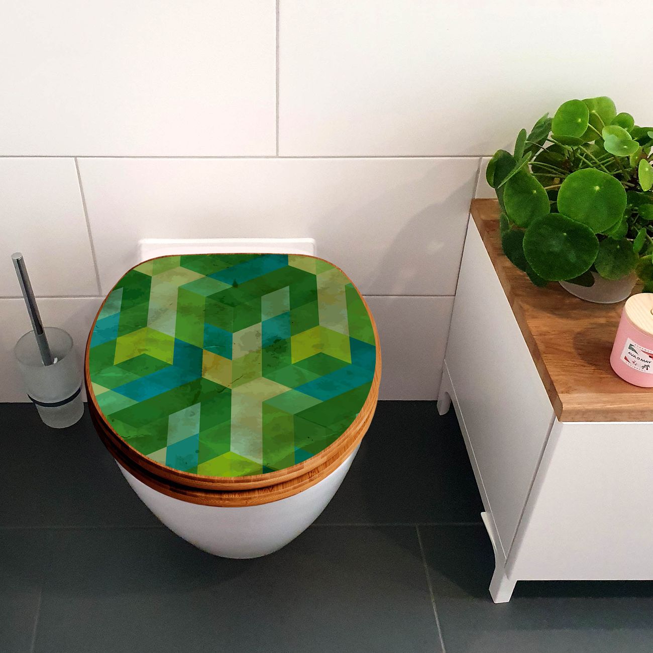 Design WC-Sitz Bambus Absenkautomatik Motiv Grüne Würfel