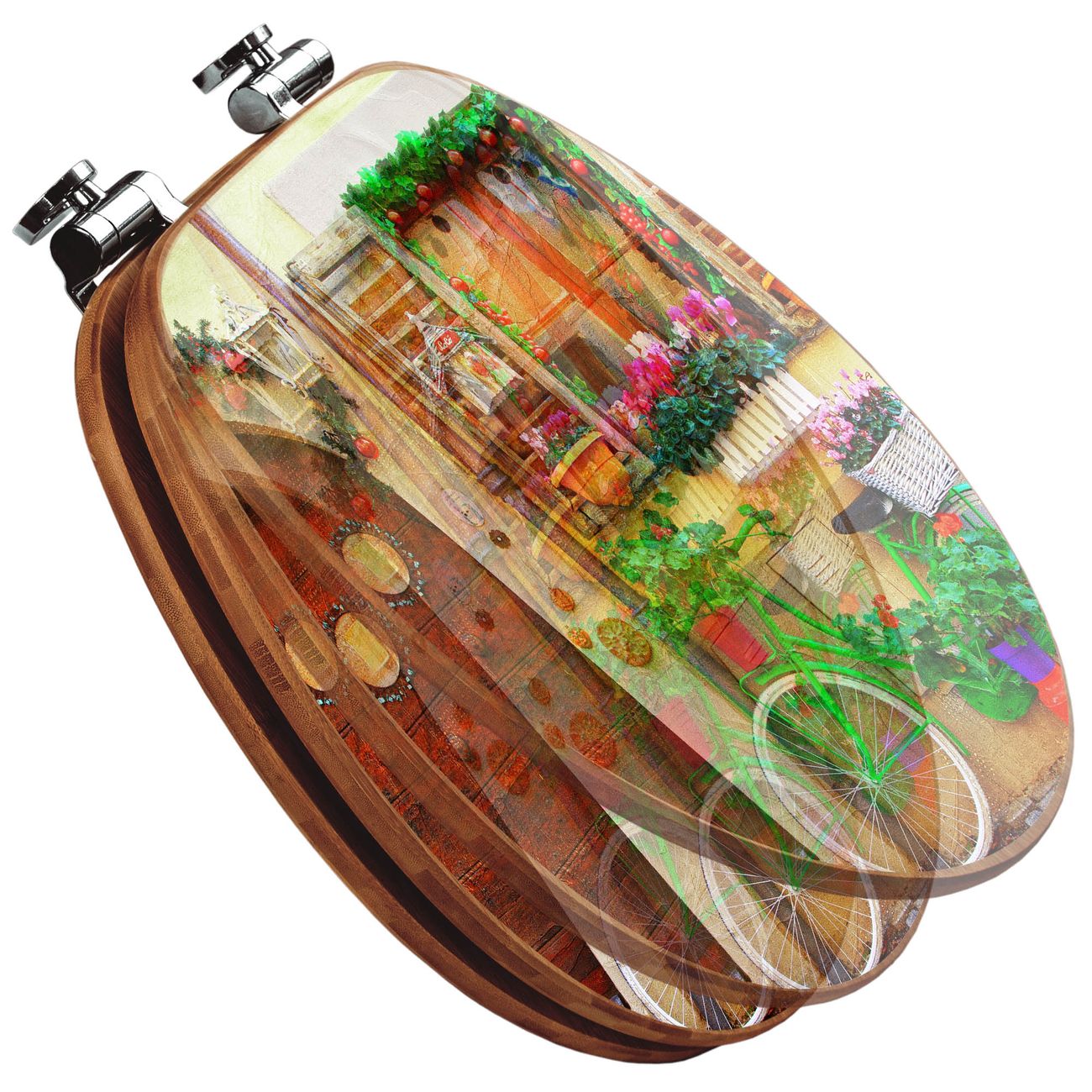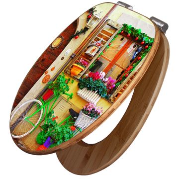Design WC-Sitz Bambus Absenkautomatik Motiv Grünes Fahrrad