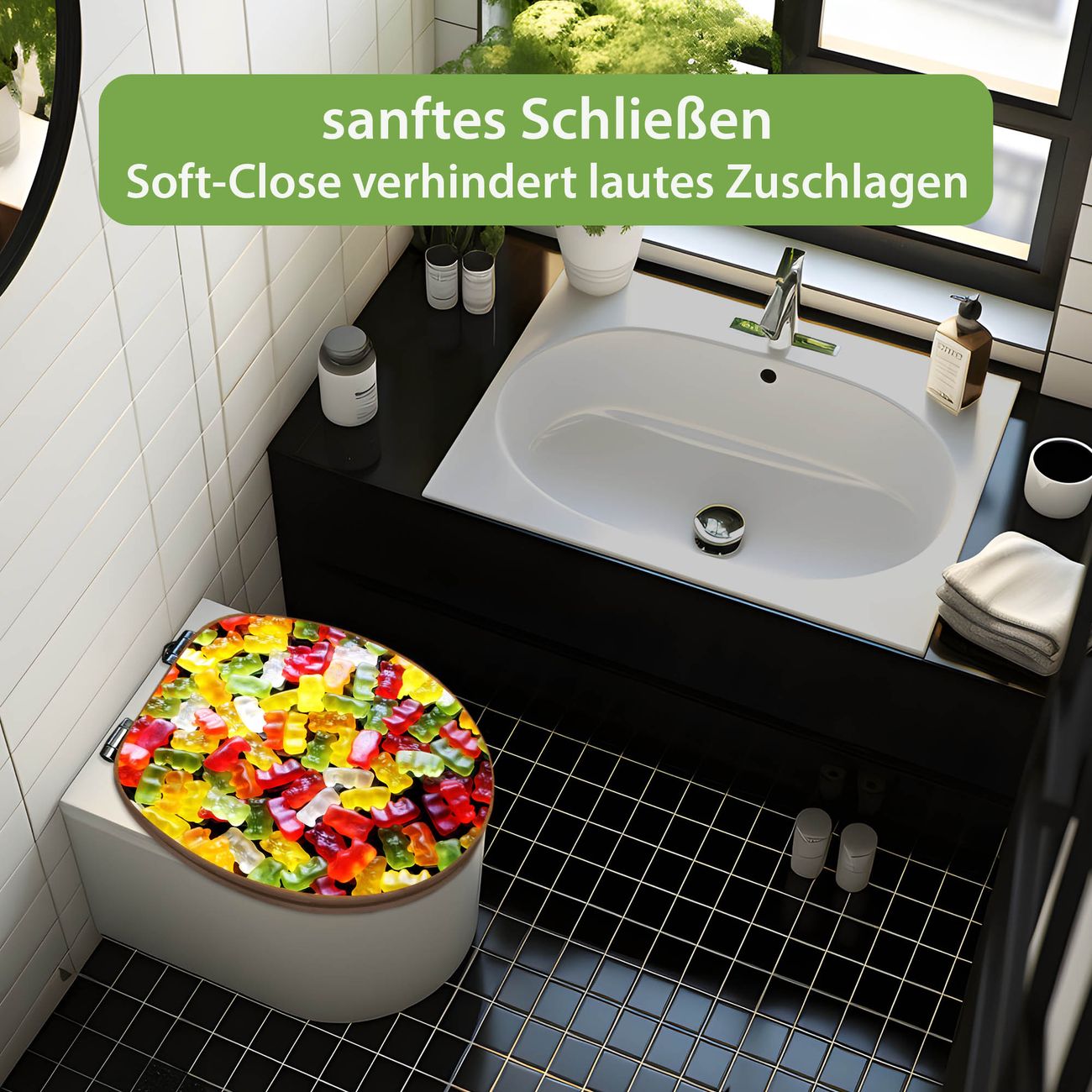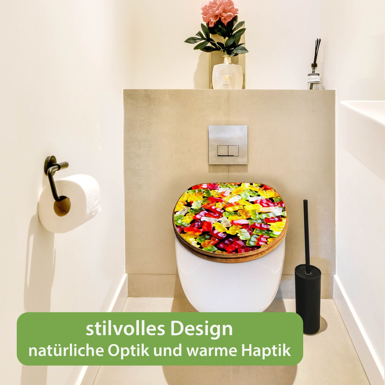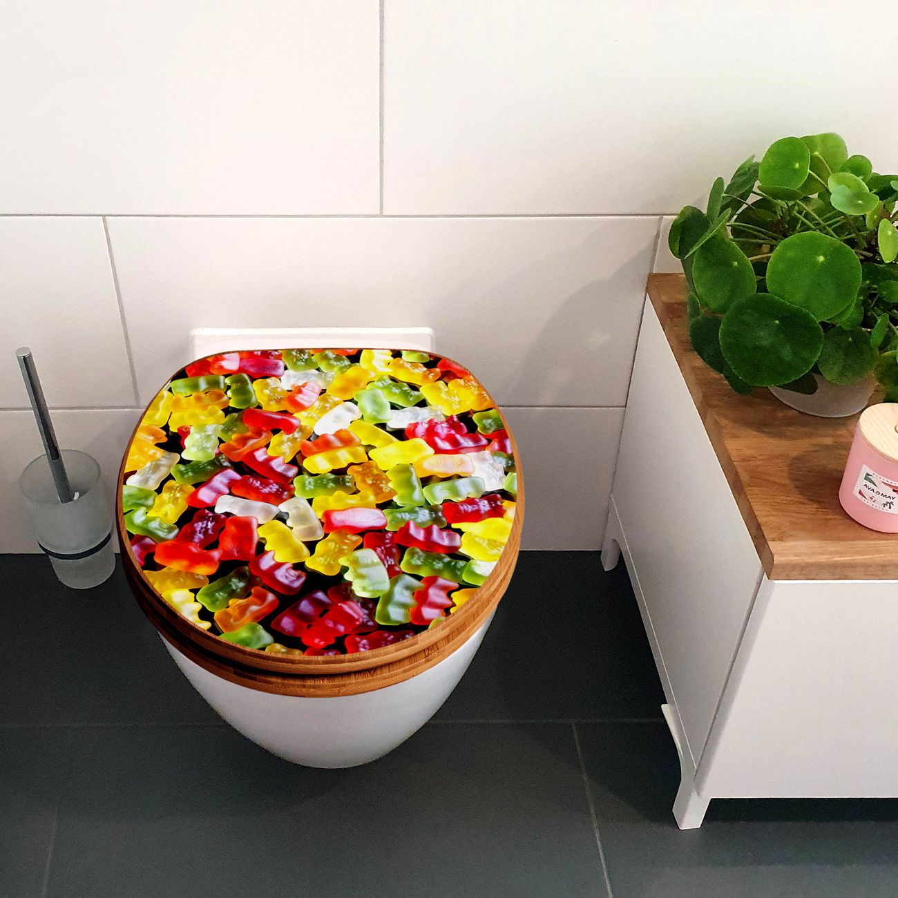 Design WC-Sitz Bambus Absenkautomatik Motiv Gummibaerchen