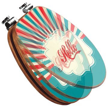 Mit dem banjado Toilettensitz in Bambus verbinden Sie Design und Funktionalität. Sie erhalten den WC-Sitz mit bewährter Holz Qualität und Universal Scharnieren. Das Motiv Motiv Hello besteht aus einer schutzlaminierten Motivfolie, die durch das Schutzlaminat zusätzlich vor Kratzern schützt. Durch diesen Motivdruck wird der WC-Sitz zu einem Blickfang in Ihrem Bad.