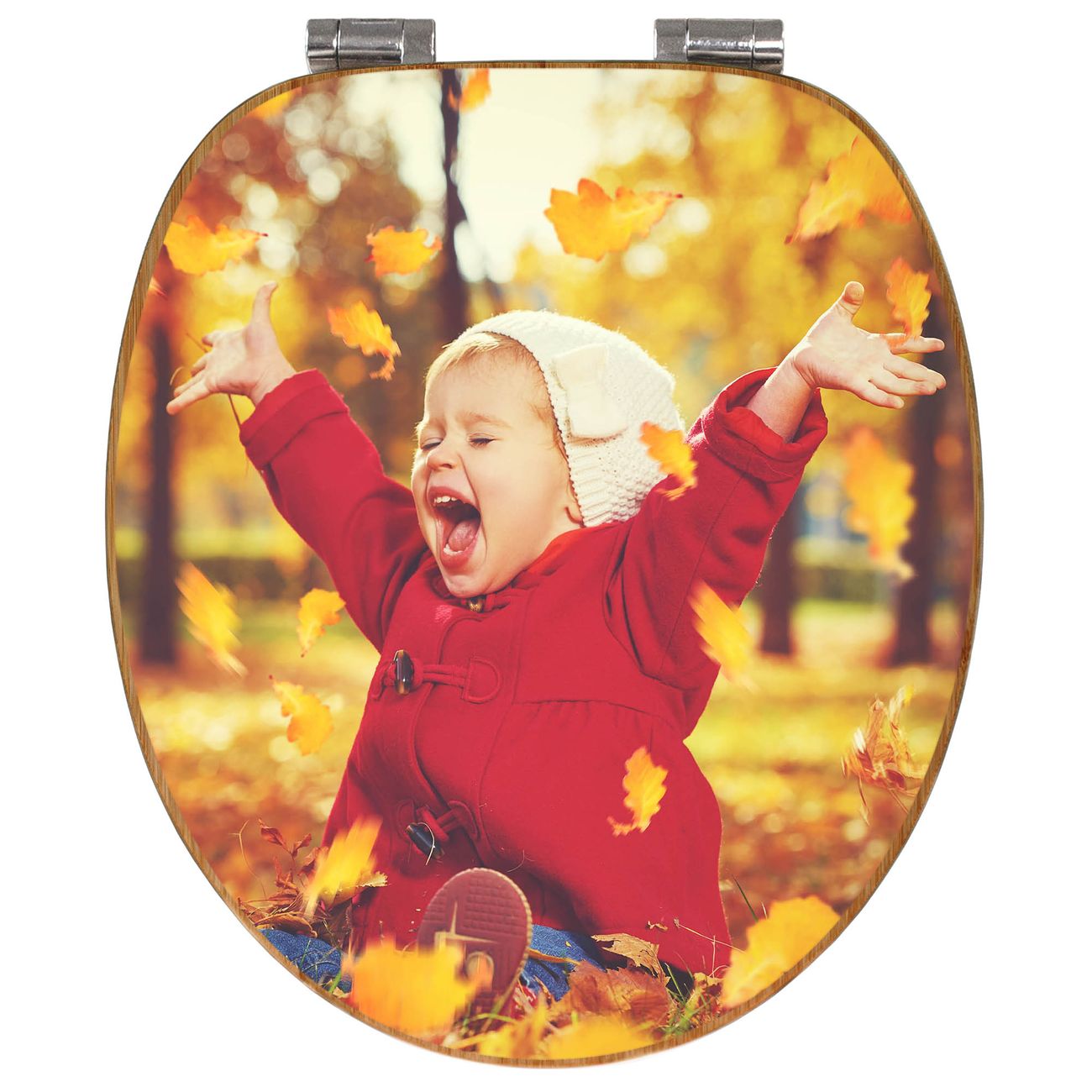 Mit dem banjado Toilettensitz in Bambus verbinden Sie Design und Funktionalität. Sie erhalten den WC-Sitz mit bewährter Holz Qualität und Universal Scharnieren. Das Motiv Motiv Herbstfreude besteht aus einer schutzlaminierten Motivfolie, die durch das Schutzlaminat zusätzlich vor Kratzern schützt. Durch diesen Motivdruck wird der WC-Sitz zu einem Blickfang in Ihrem Bad.