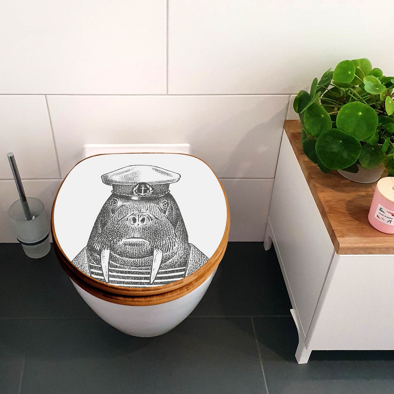Design WC-Sitz Bambus Absenkautomatik Motiv Herr Walross 2