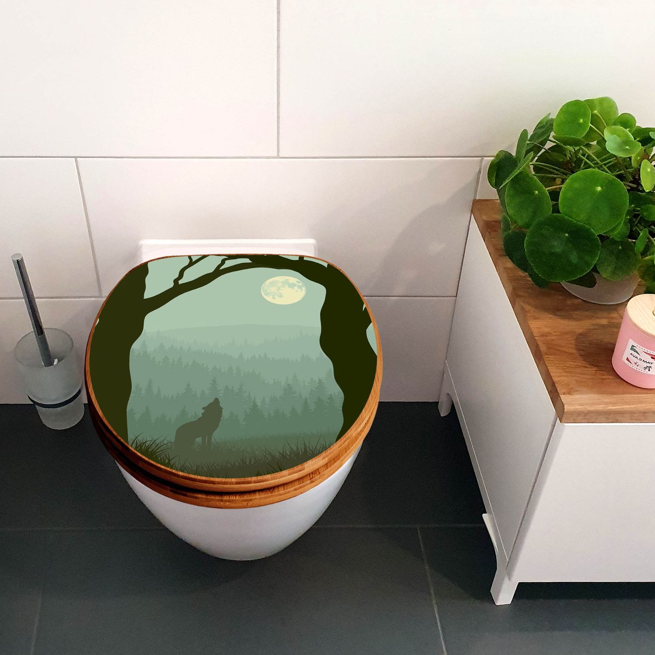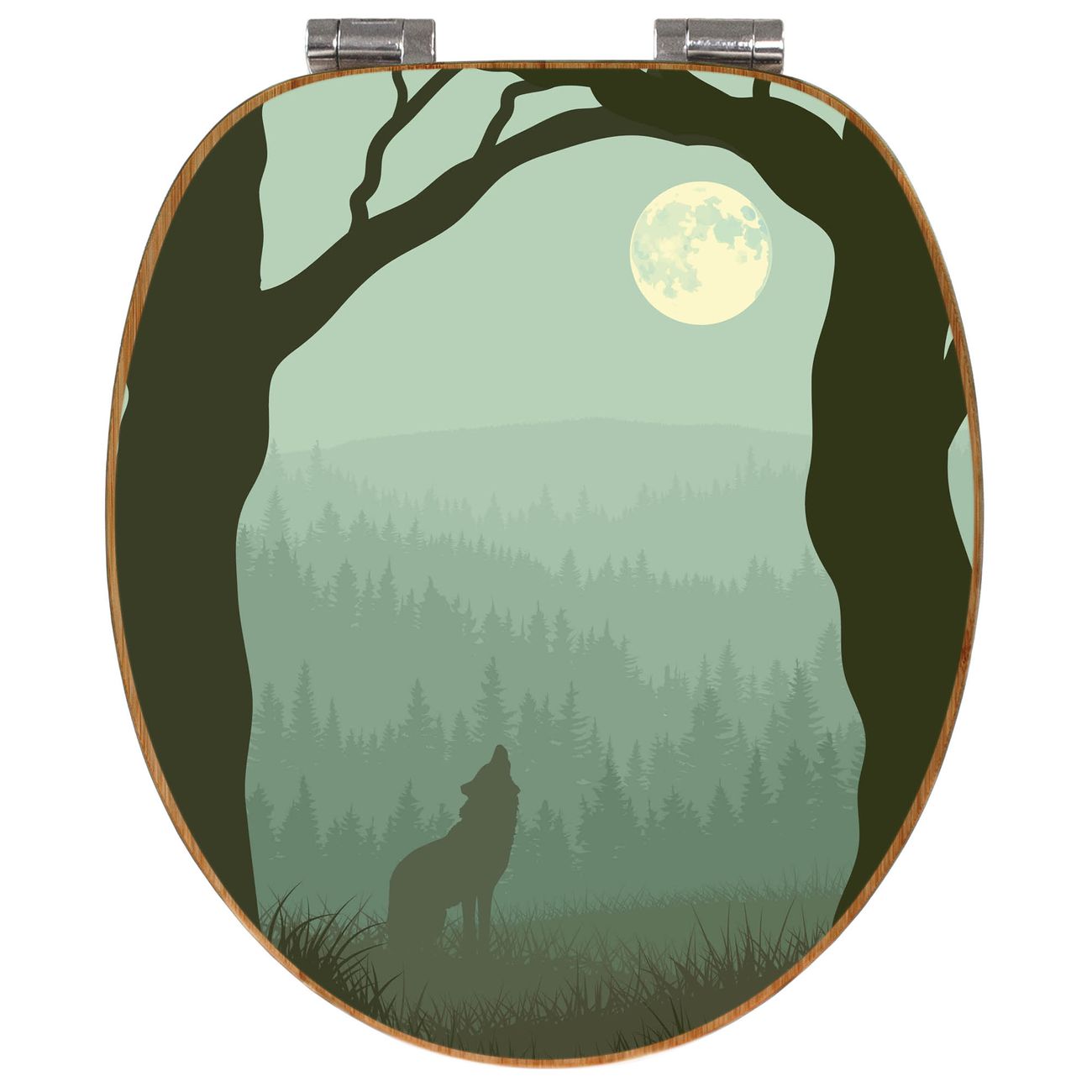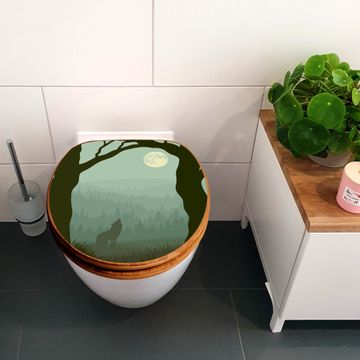 Design WC-Sitz Bambus Absenkautomatik Motiv Heulender Wolf