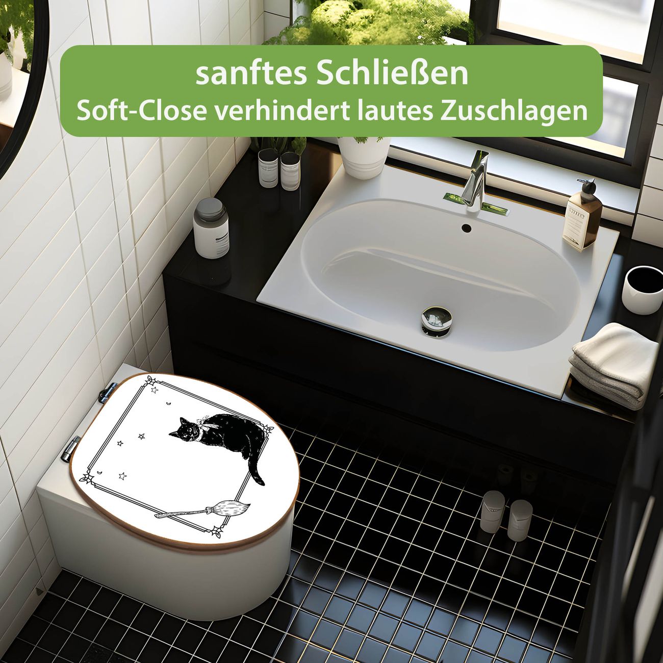 Design WC-Sitz Bambus Absenkautomatik Motiv Hexen und Kater