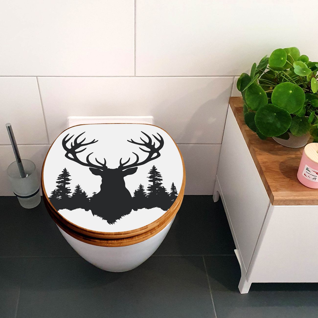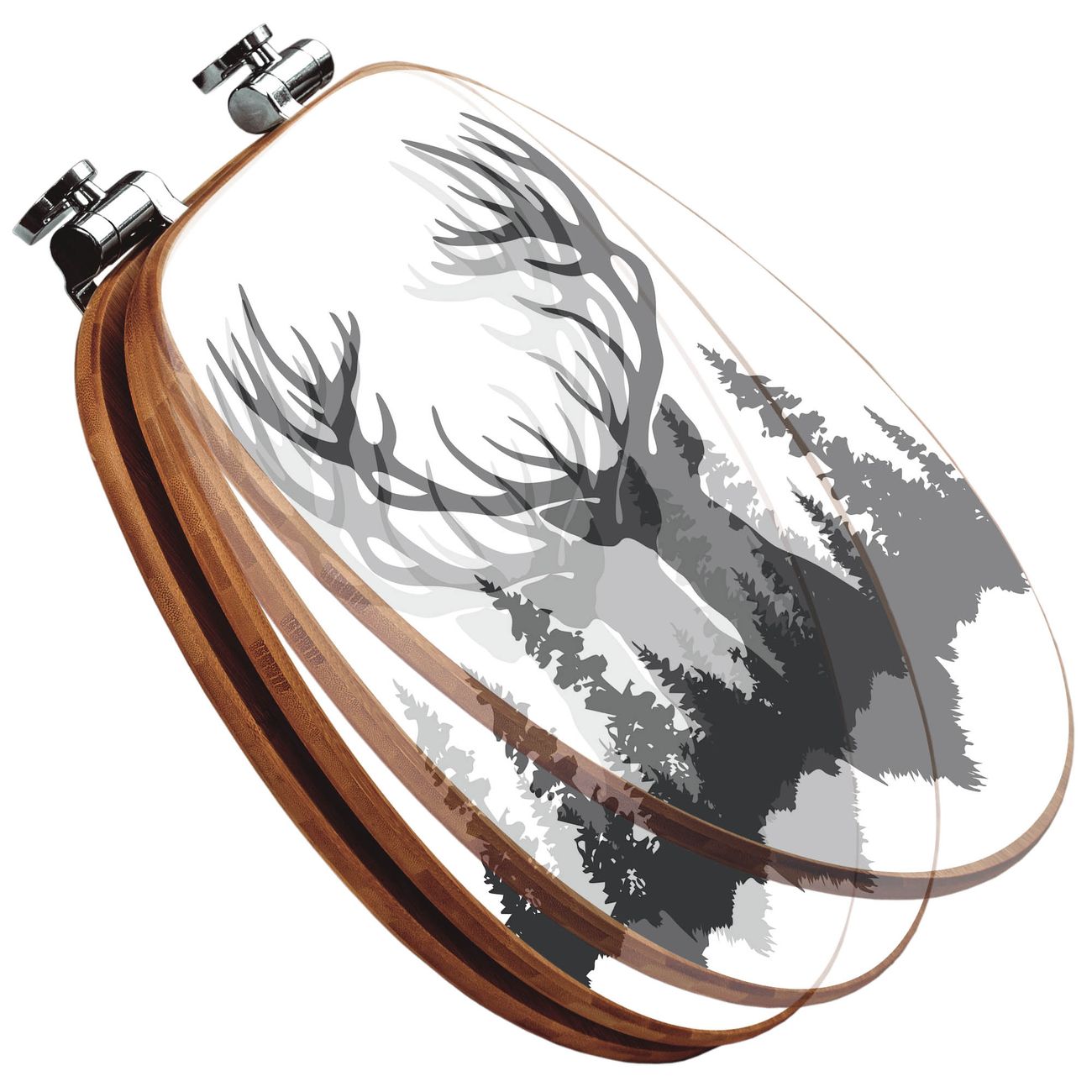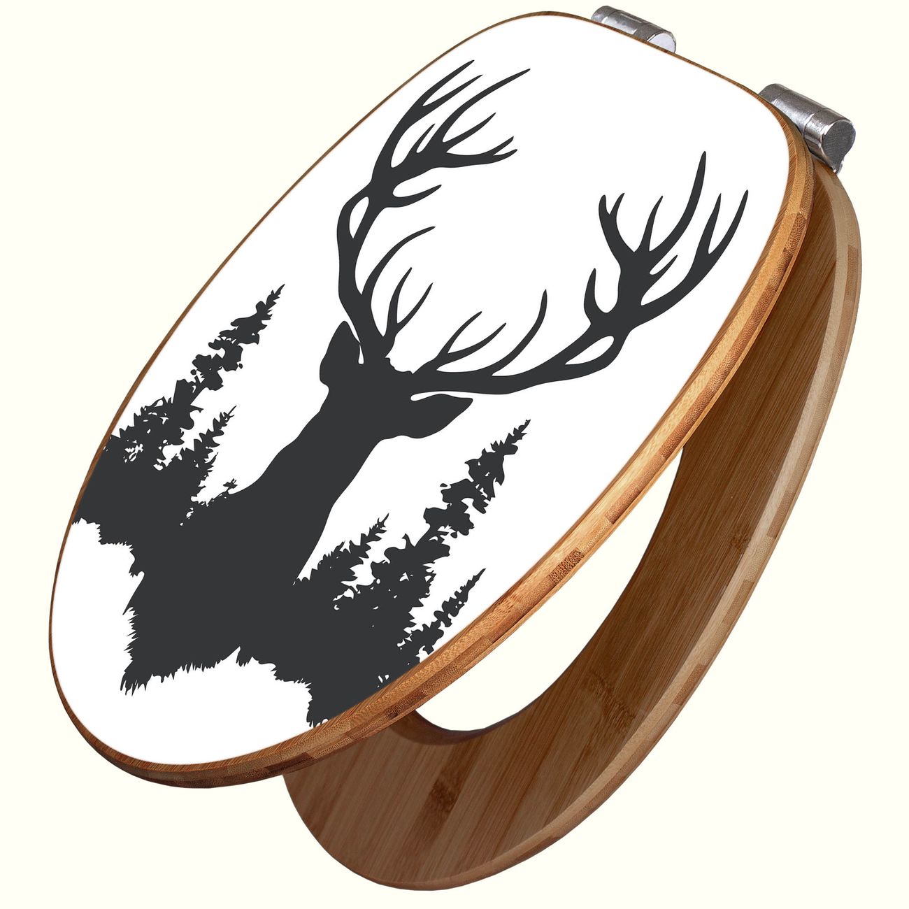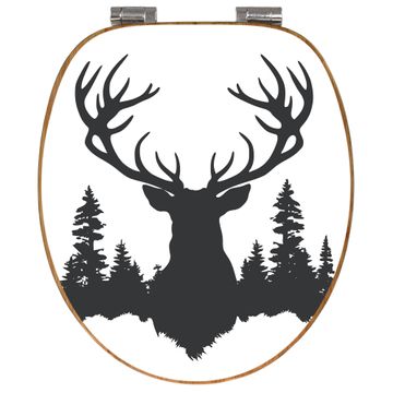 Design WC-Sitz Bambus Absenkautomatik Motiv Hirsch im Wald Silhouette