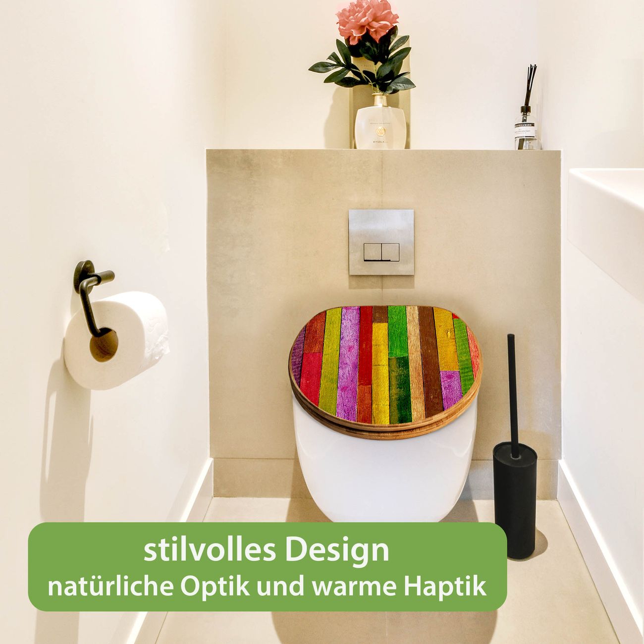 Mit dem banjado Toilettensitz in Bambus verbinden Sie Design und Funktionalität. Sie erhalten den WC-Sitz mit bewährter Holz Qualität und Universal Scharnieren. Das Motiv Motiv Holz Collage Bunt besteht aus einer schutzlaminierten Motivfolie, die durch das Schutzlaminat zusätzlich vor Kratzern schützt. Durch diesen Motivdruck wird der WC-Sitz zu einem Blickfang in Ihrem Bad.
