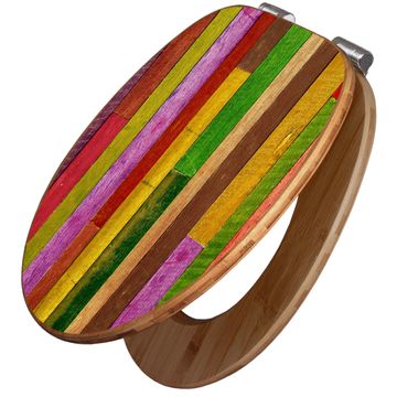 Design WC-Sitz Bambus Absenkautomatik Motiv Holz Collage Bunt