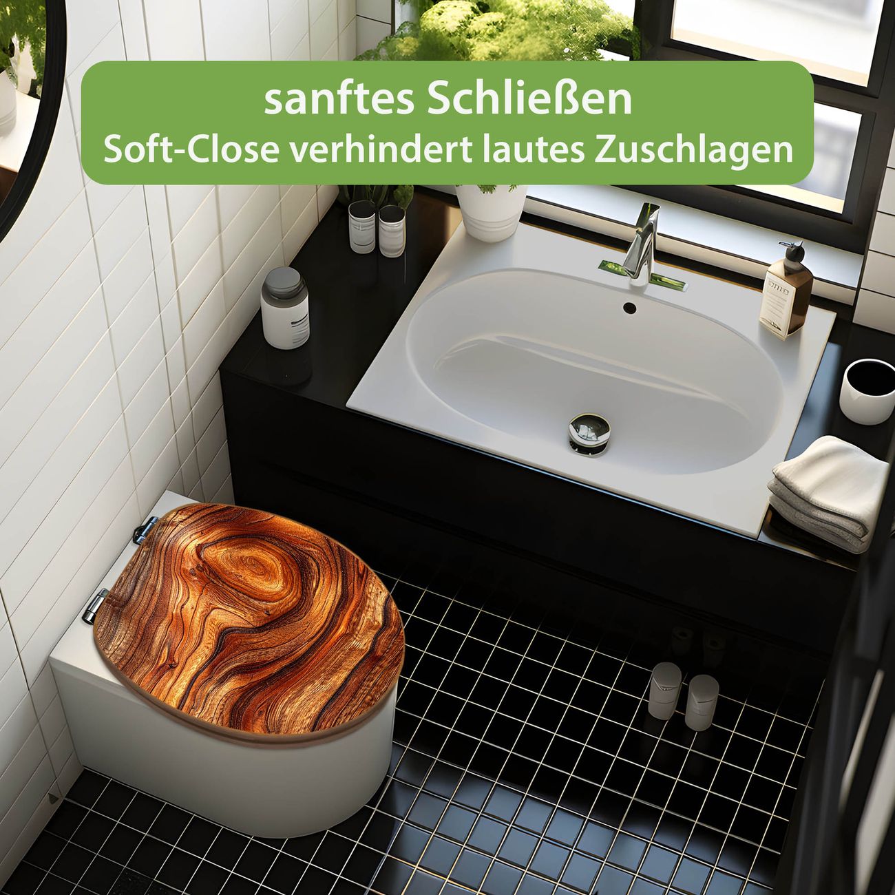 Design WC-Sitz Bambus Absenkautomatik Motiv Holz Gemasert Astloch