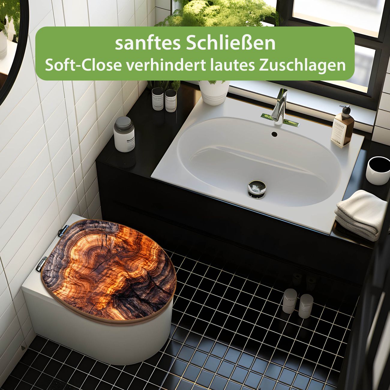Design WC-Sitz Bambus Absenkautomatik Motiv Holz Gemasert Fluss Warm
