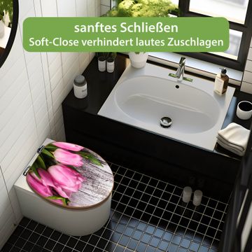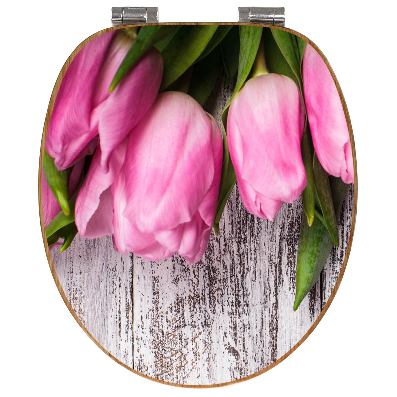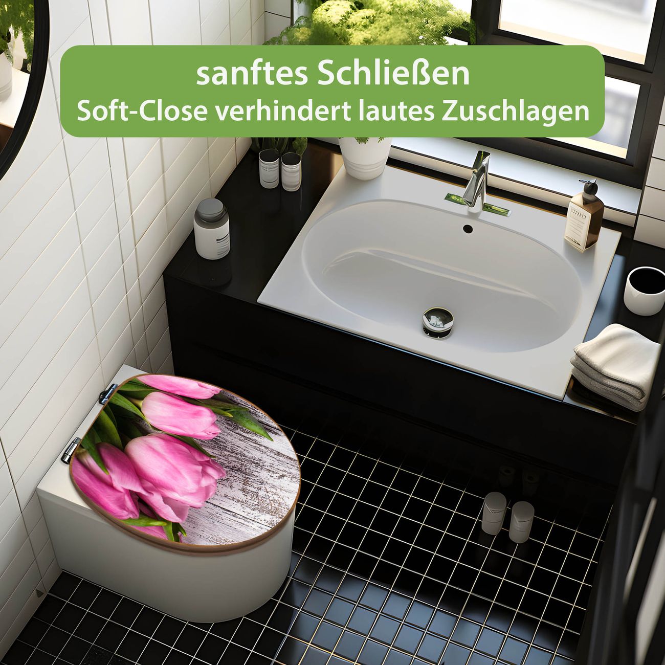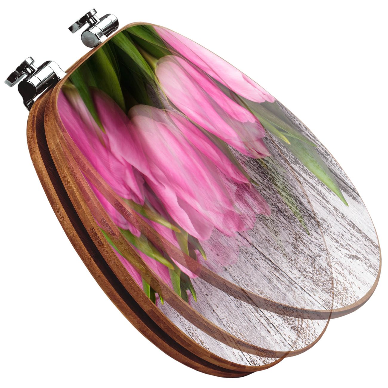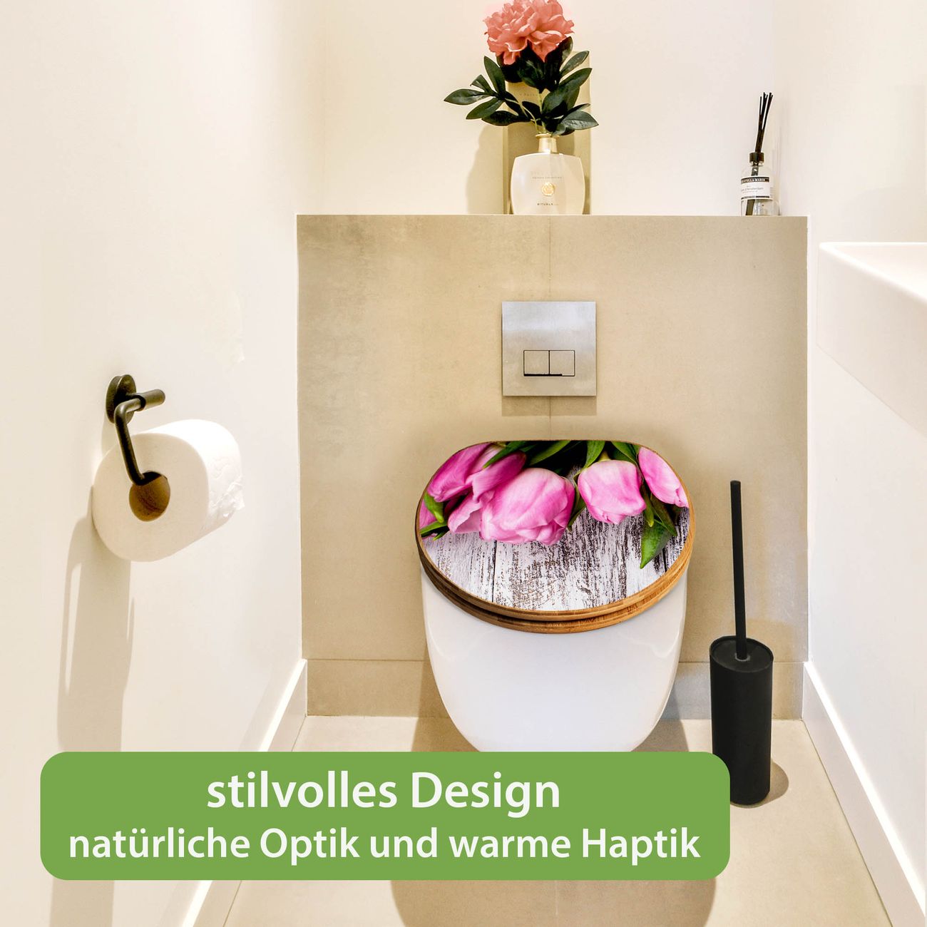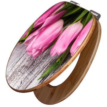 Design WC-Sitz Bambus Absenkautomatik Motiv Holz und Tulpen