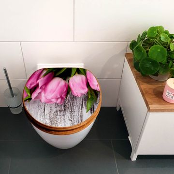 Mit dem banjado Toilettensitz in Bambus verbinden Sie Design und Funktionalität. Sie erhalten den WC-Sitz mit bewährter Holz Qualität und Universal Scharnieren. Das Motiv Motiv Holz und Tulpen besteht aus einer schutzlaminierten Motivfolie, die durch das Schutzlaminat zusätzlich vor Kratzern schützt. Durch diesen Motivdruck wird der WC-Sitz zu einem Blickfang in Ihrem Bad.