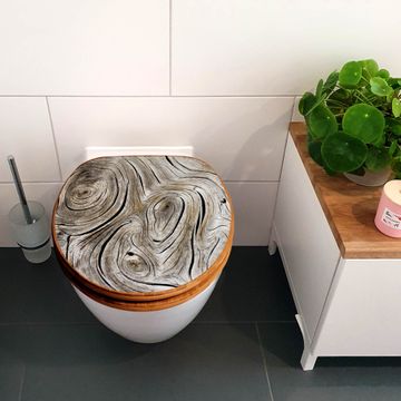 Mit dem banjado Toilettensitz in Bambus verbinden Sie Design und Funktionalität. Sie erhalten den WC-Sitz mit bewährter Holz Qualität und Universal Scharnieren. Das Motiv Motiv Holzwirbel besteht aus einer schutzlaminierten Motivfolie, die durch das Schutzlaminat zusätzlich vor Kratzern schützt. Durch diesen Motivdruck wird der WC-Sitz zu einem Blickfang in Ihrem Bad.