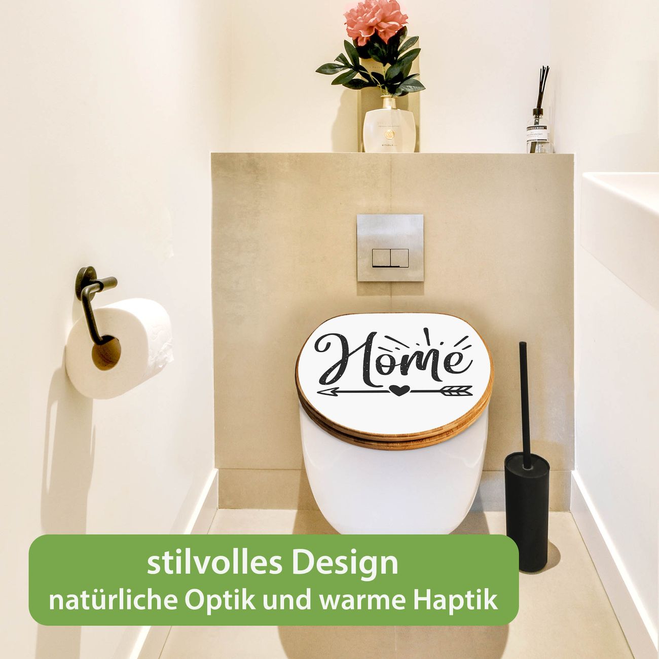 Design WC-Sitz Bambus Absenkautomatik Motiv Home mit Pfeil