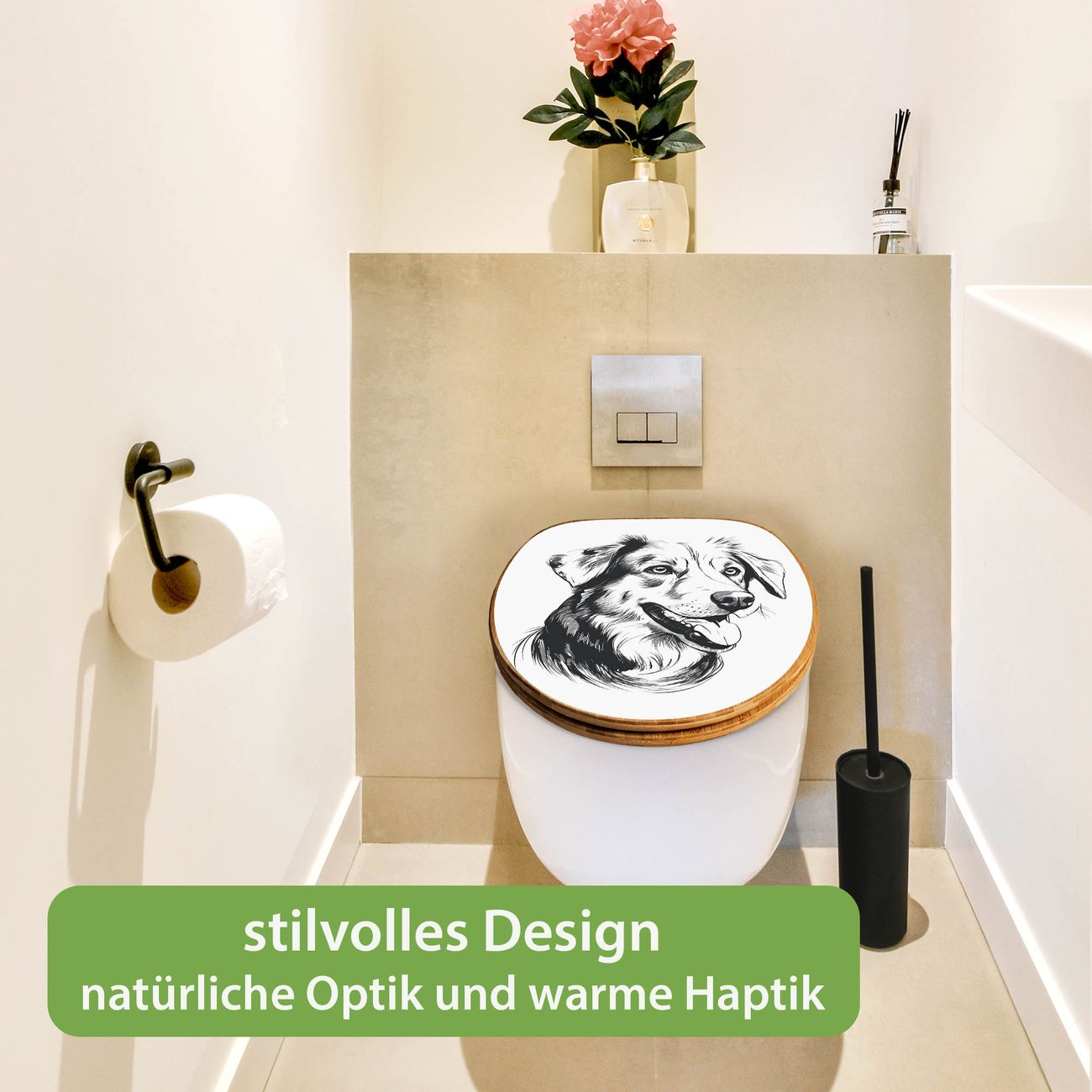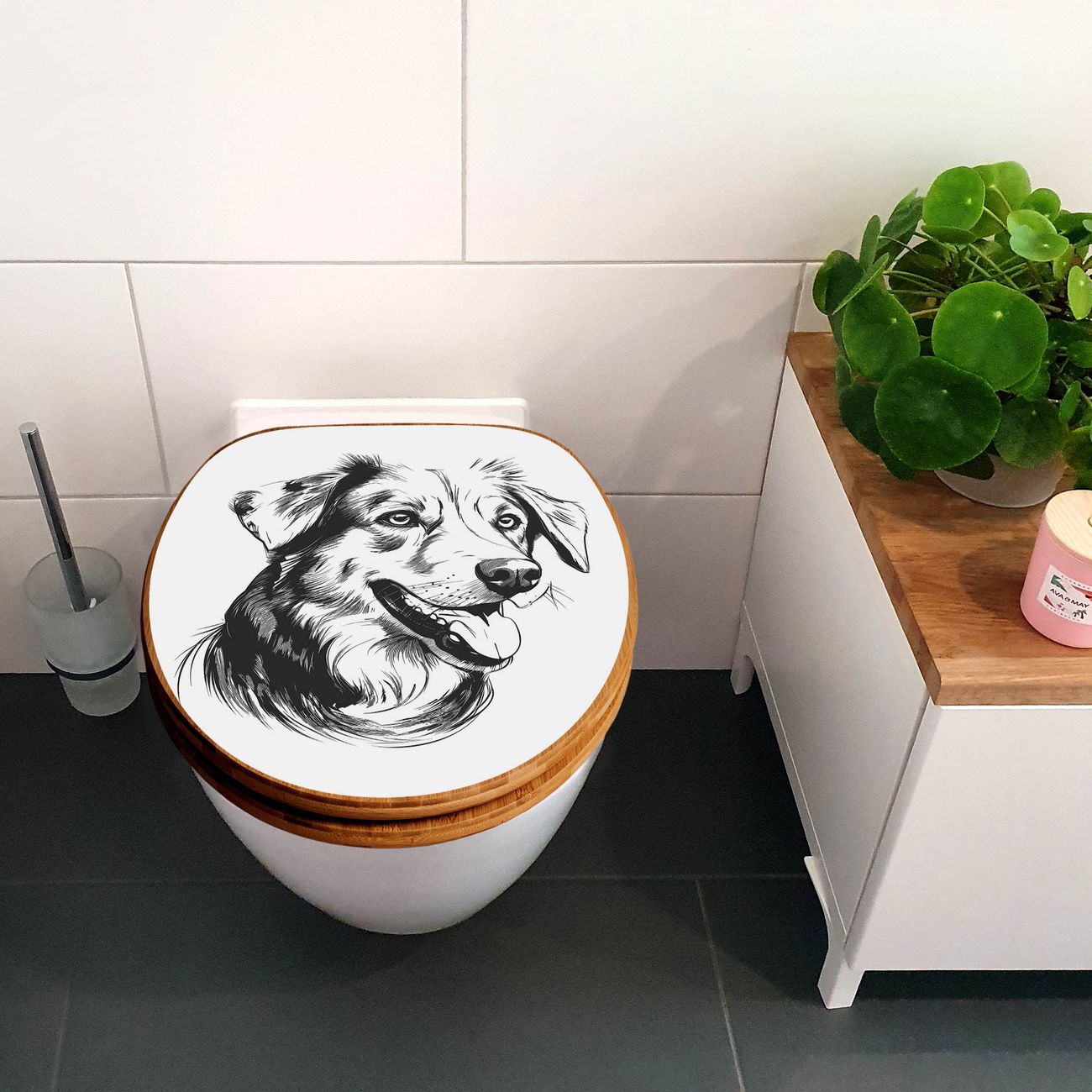 Design WC-Sitz Bambus Absenkautomatik Motiv Hund Illustration
