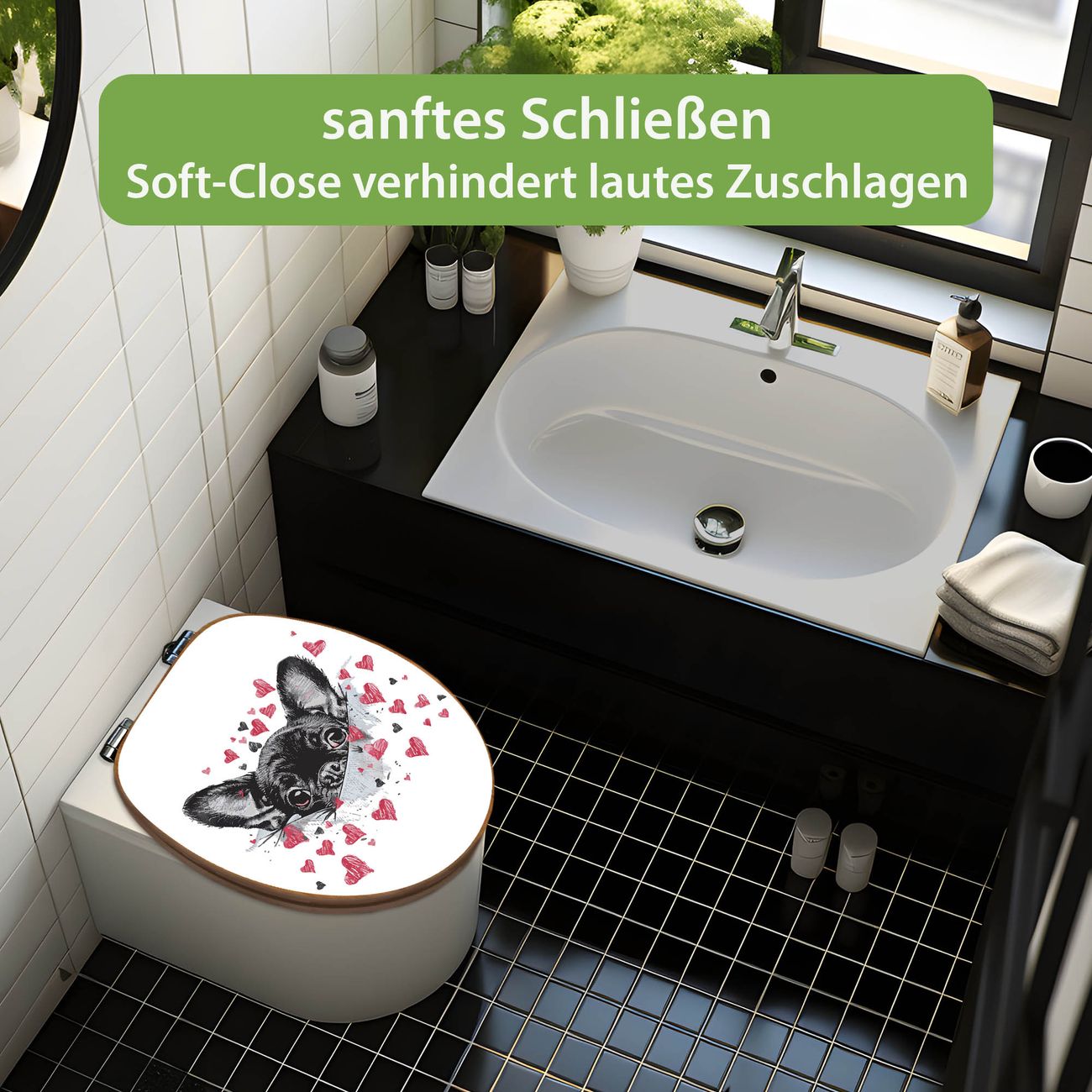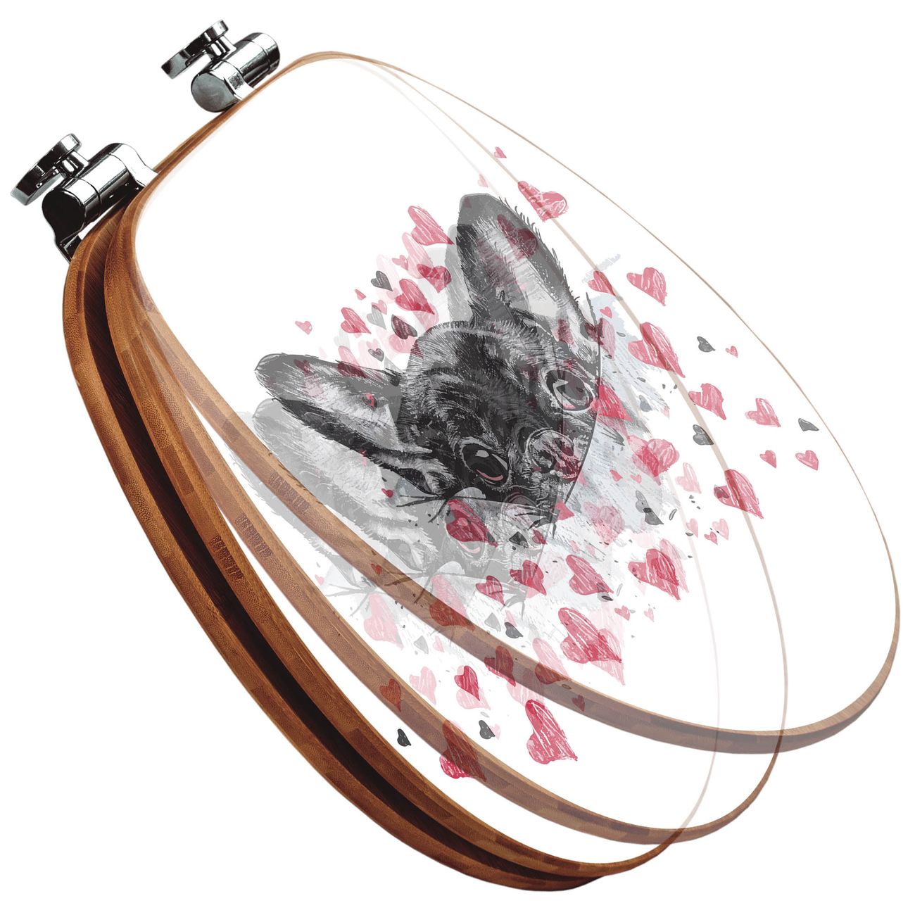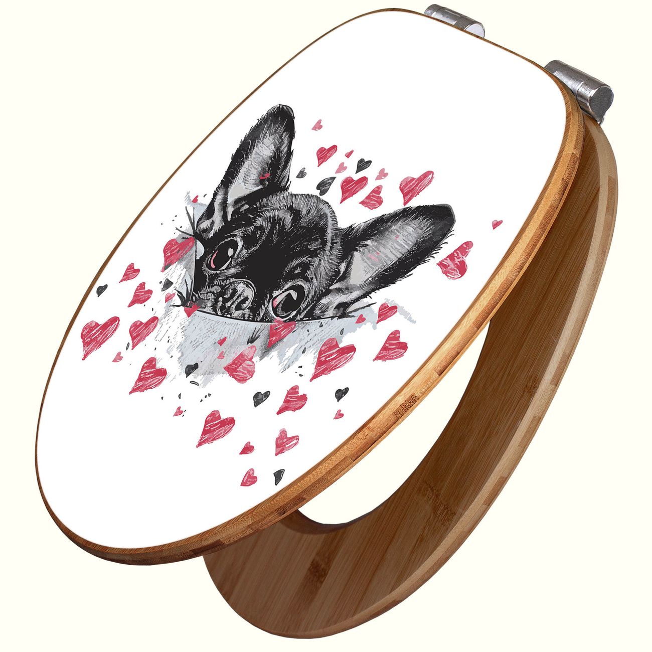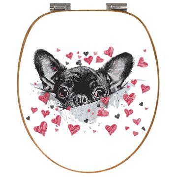 Design WC-Sitz Bambus Absenkautomatik Motiv Hund mit Herzen