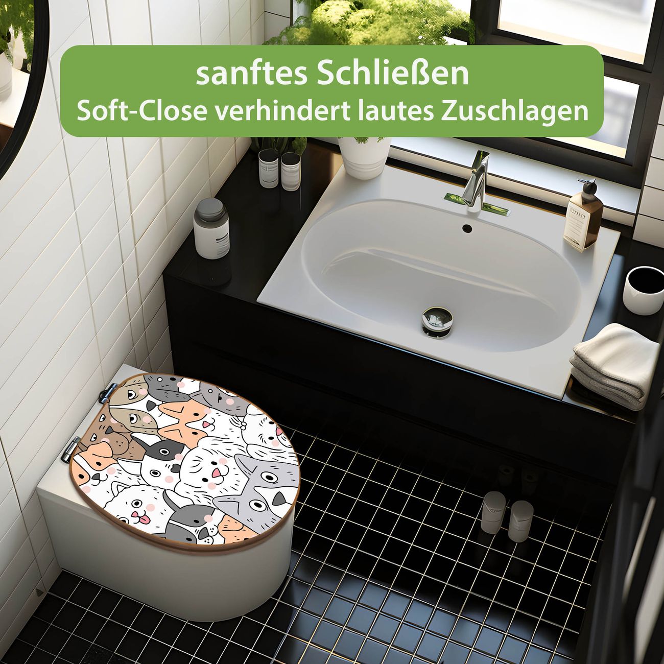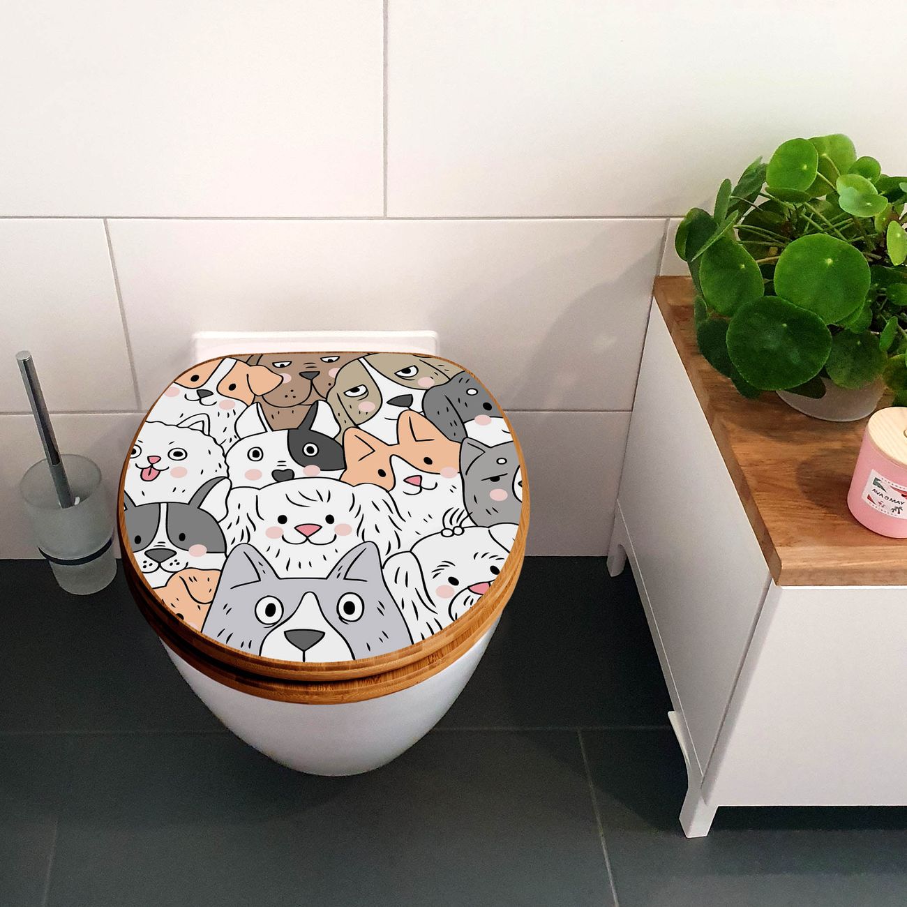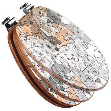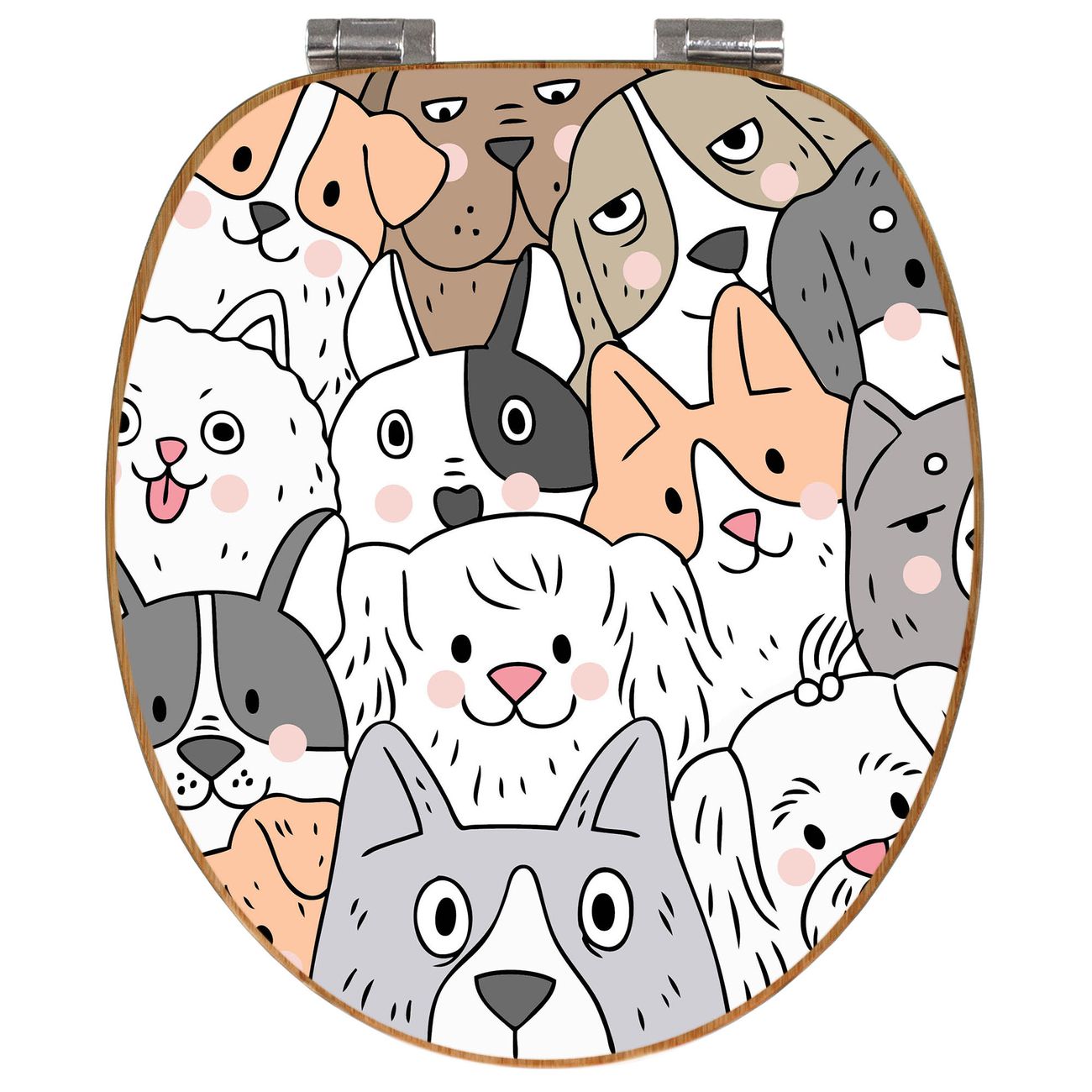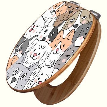 Design WC-Sitz Bambus Absenkautomatik Motiv Hunde Gruppe neugierig