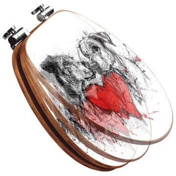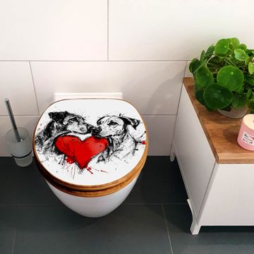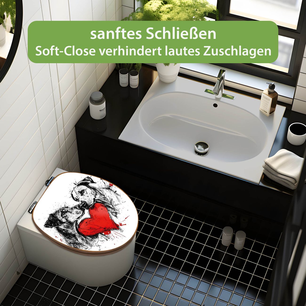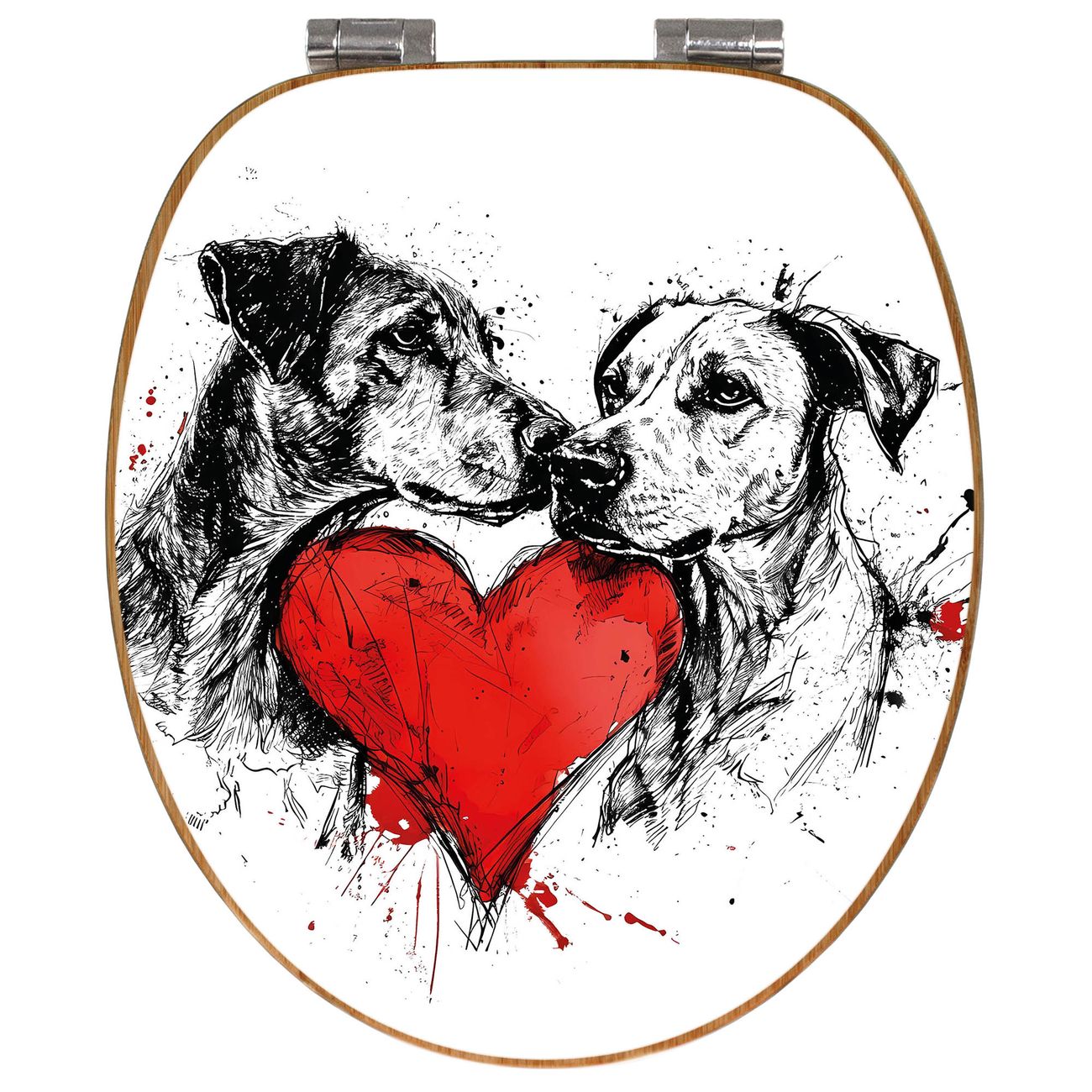 Design WC-Sitz Bambus Absenkautomatik Motiv Hunde mit Herz