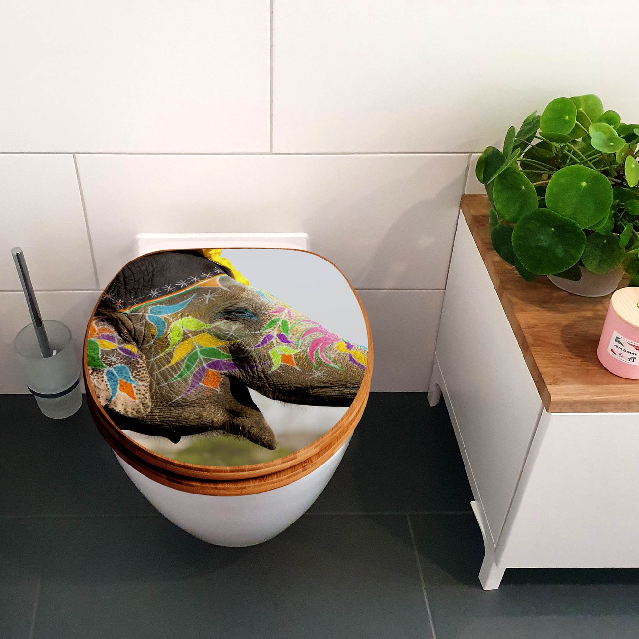 Design WC-Sitz Bambus Absenkautomatik Motiv Indischer Elephant