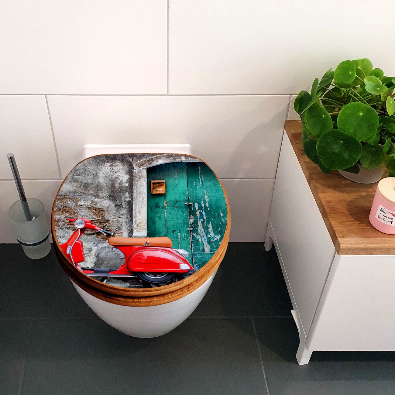 Design WC-Sitz Bambus Absenkautomatik Motiv Italienischer Roller
