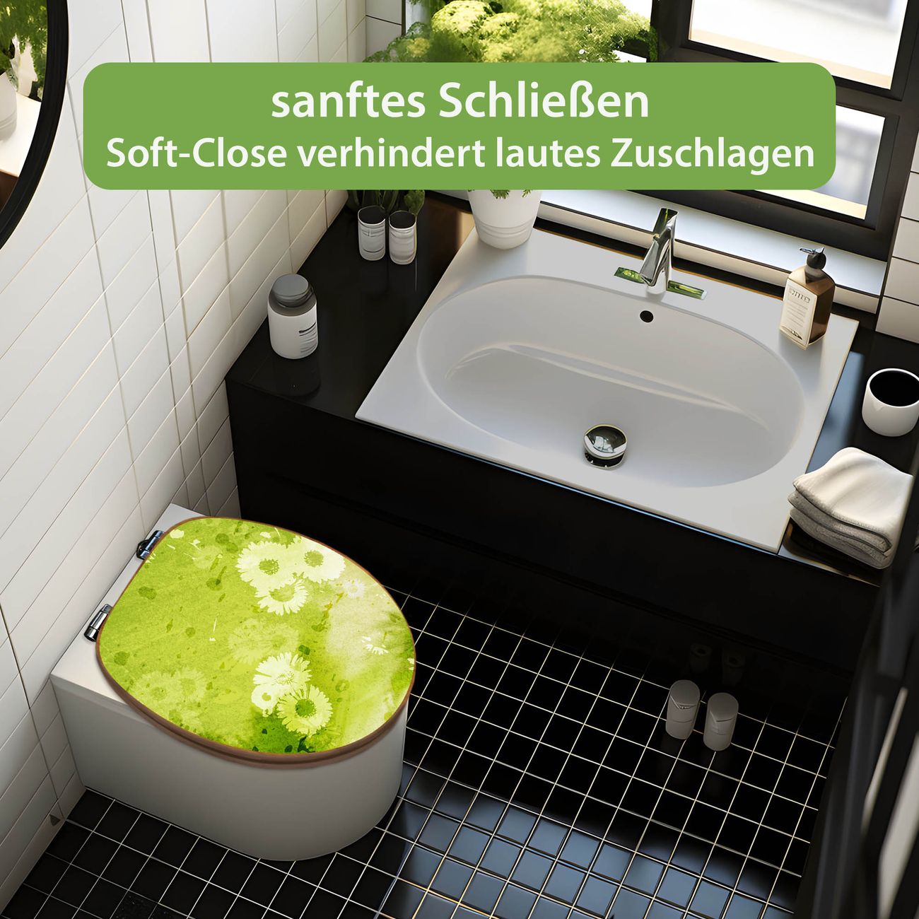Design WC-Sitz Bambus Absenkautomatik Motiv Kamille Grün