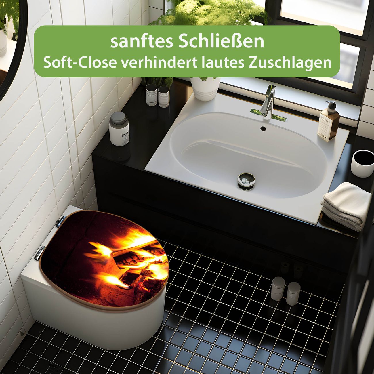 Design WC-Sitz Bambus Absenkautomatik Motiv Kaminfeuer