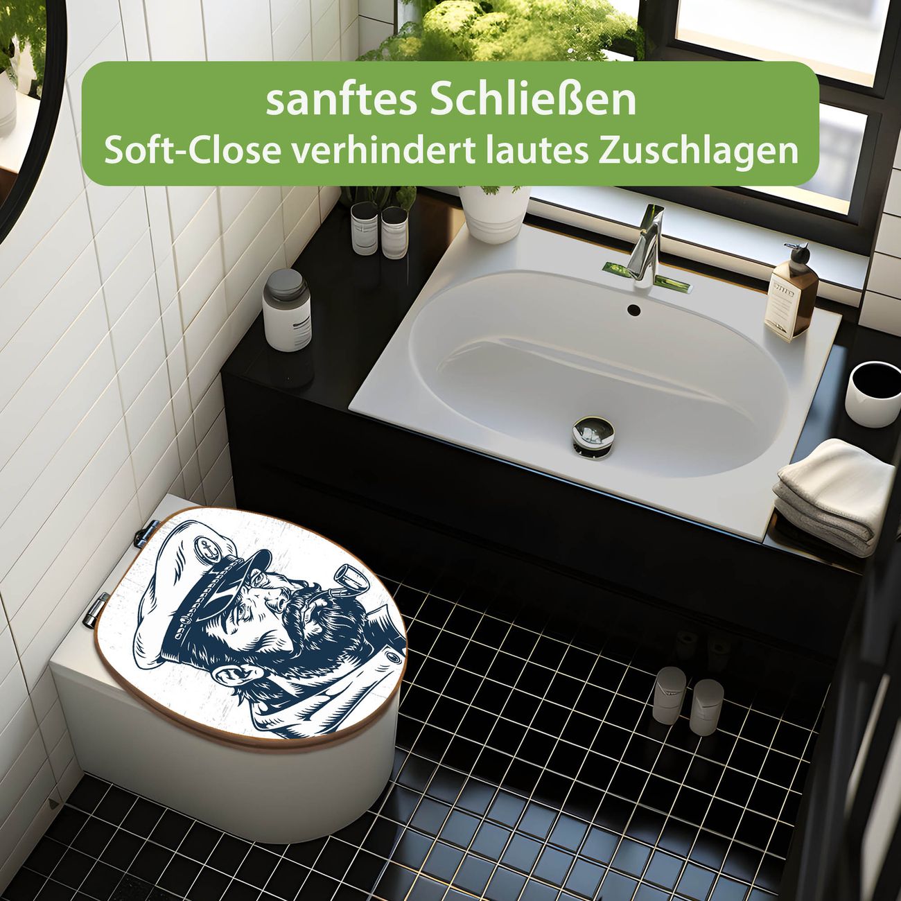 Design WC-Sitz Bambus Absenkautomatik Motiv Kapitän Portrait