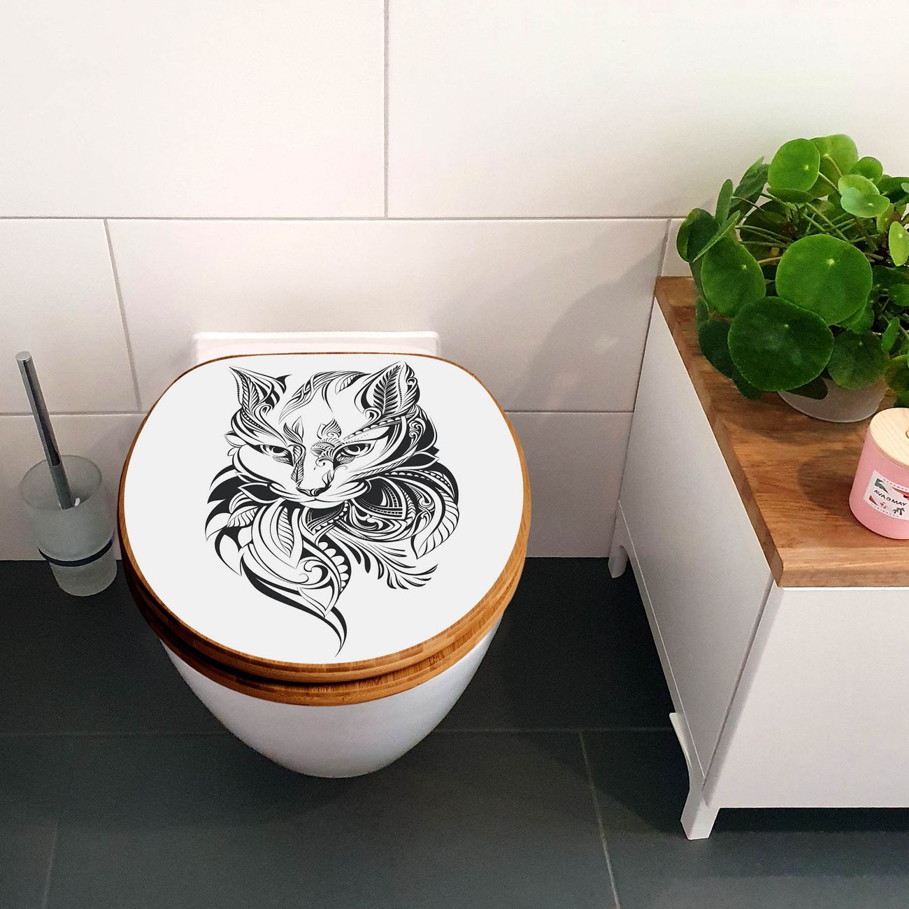 Design WC-Sitz Bambus Absenkautomatik Motiv Katze 2