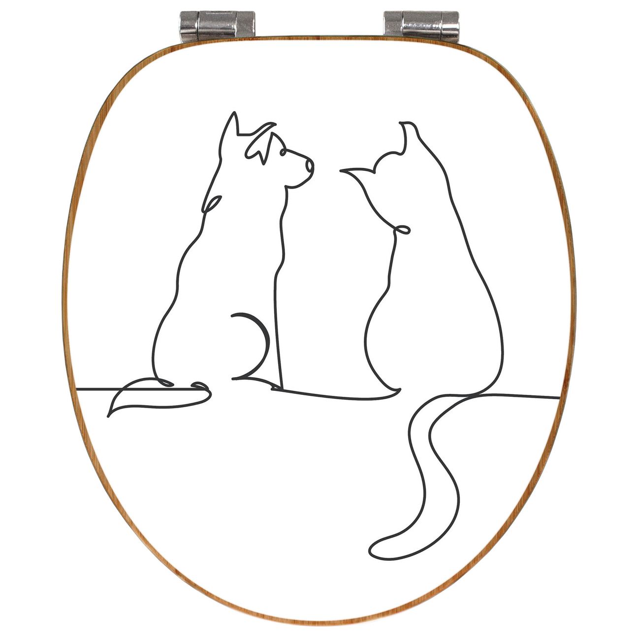 Design WC-Sitz Bambus Absenkautomatik Motiv Katzen-Hunde-Freundschaft Lineart
