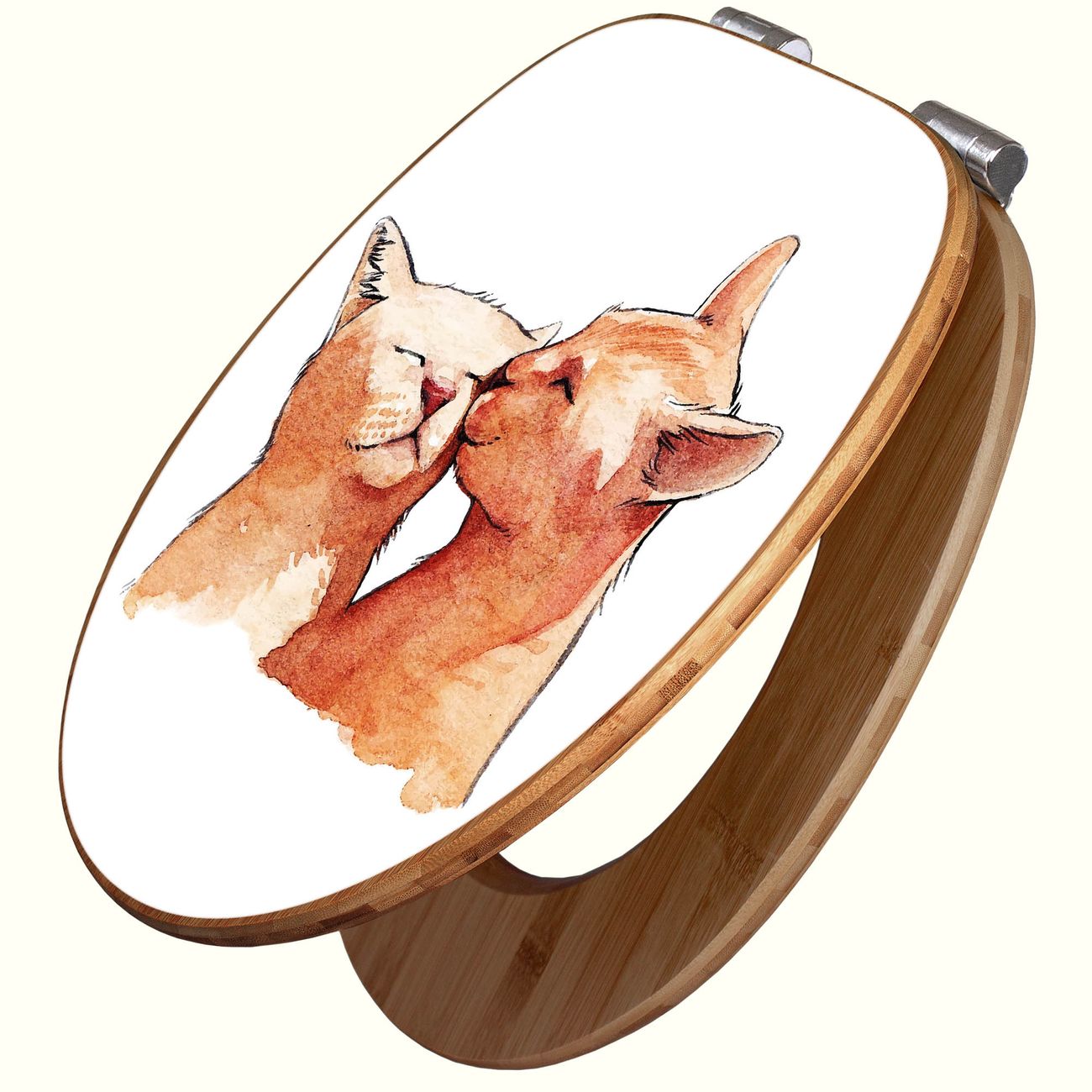 Design WC-Sitz Bambus Absenkautomatik Motiv Katzenkuss