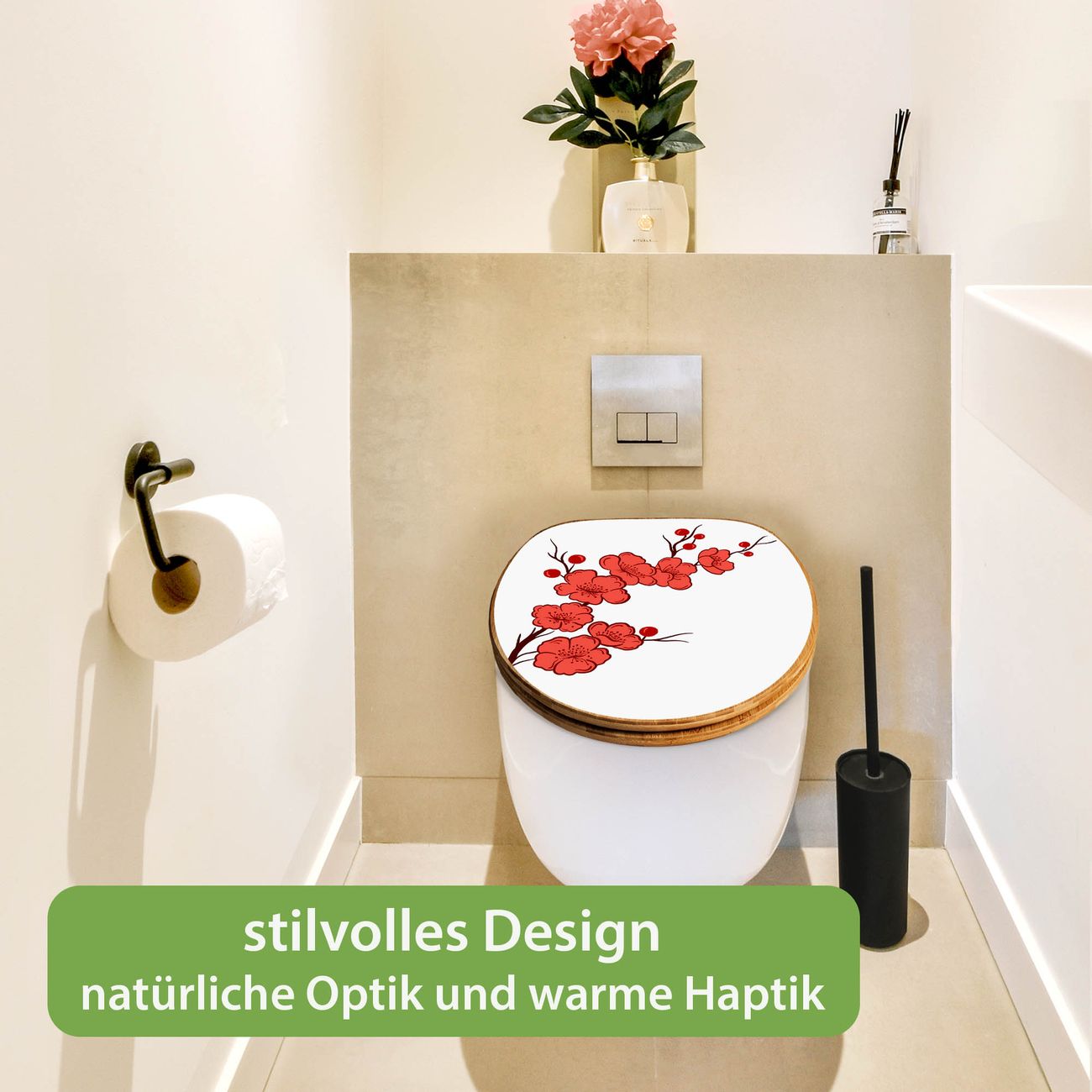 Design WC-Sitz Bambus Absenkautomatik Motiv Kirschblütenzweig