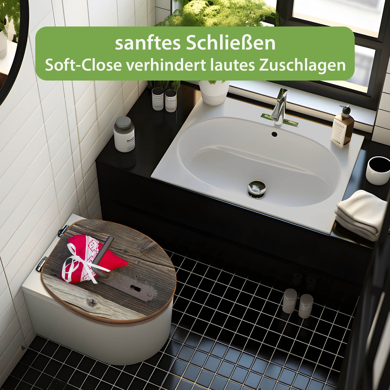 Design WC-Sitz Bambus Absenkautomatik Motiv Knock On Your Door
