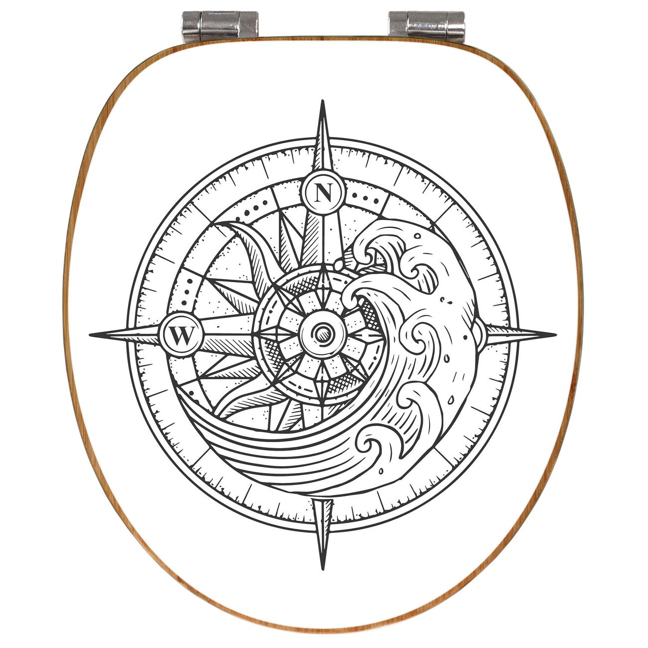 Design WC-Sitz Bambus Absenkautomatik Motiv Kompass 2