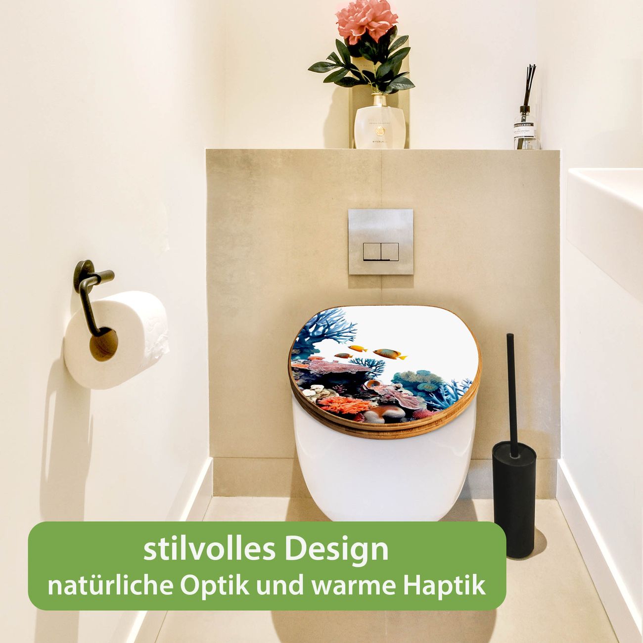 Design WC-Sitz Bambus Absenkautomatik Motiv Korallenriff und Fische