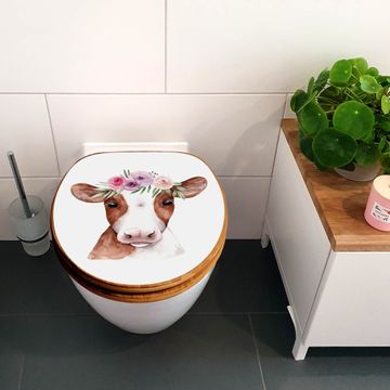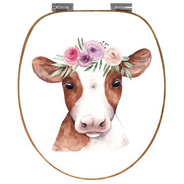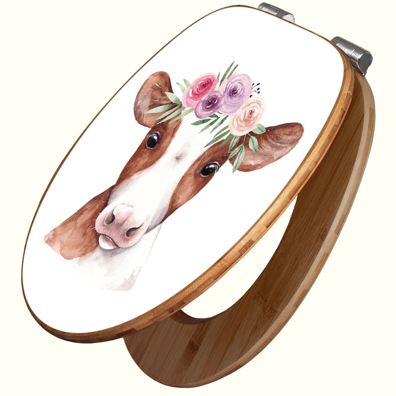 Design WC-Sitz Bambus Absenkautomatik Motiv Kuh mit Blumenkrone