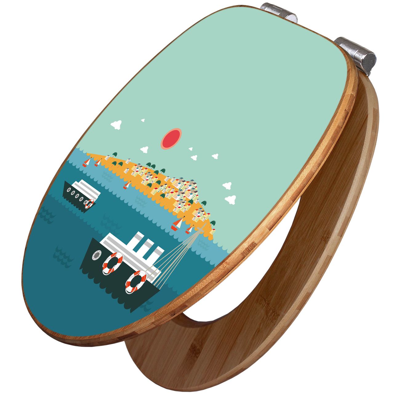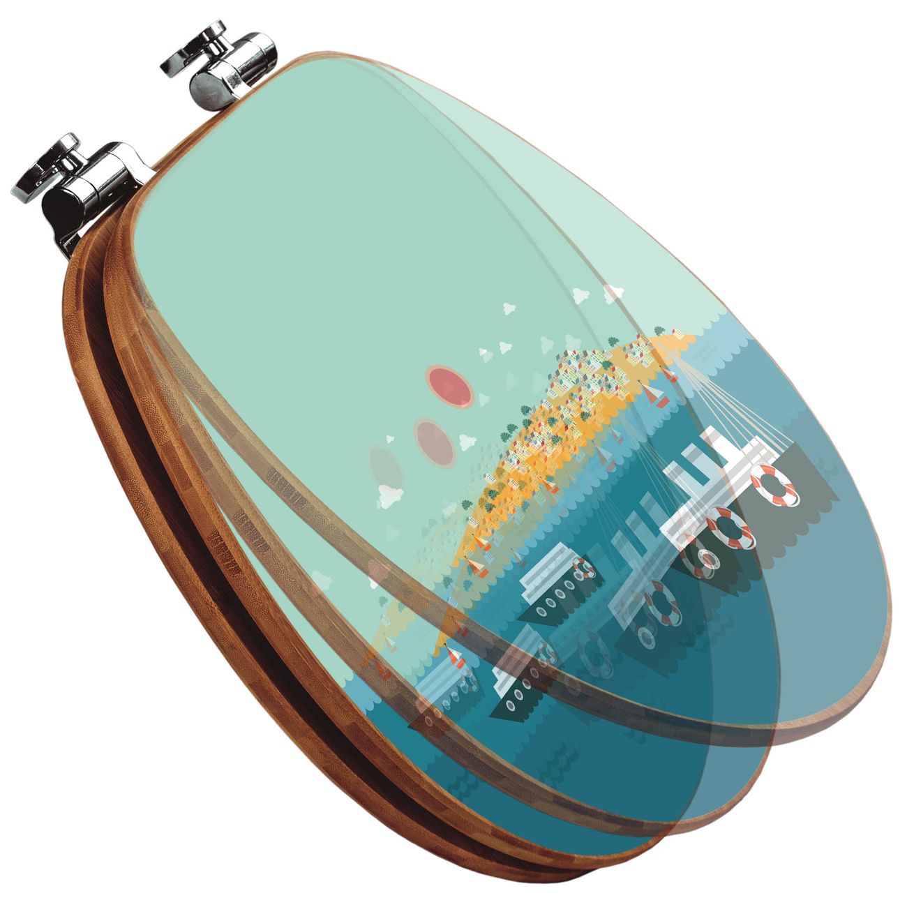 Mit dem banjado Toilettensitz in Bambus verbinden Sie Design und Funktionalität. Sie erhalten den WC-Sitz mit bewährter Holz Qualität und Universal Scharnieren. Das Motiv Motiv Land in Sicht besteht aus einer schutzlaminierten Motivfolie, die durch das Schutzlaminat zusätzlich vor Kratzern schützt. Durch diesen Motivdruck wird der WC-Sitz zu einem Blickfang in Ihrem Bad.