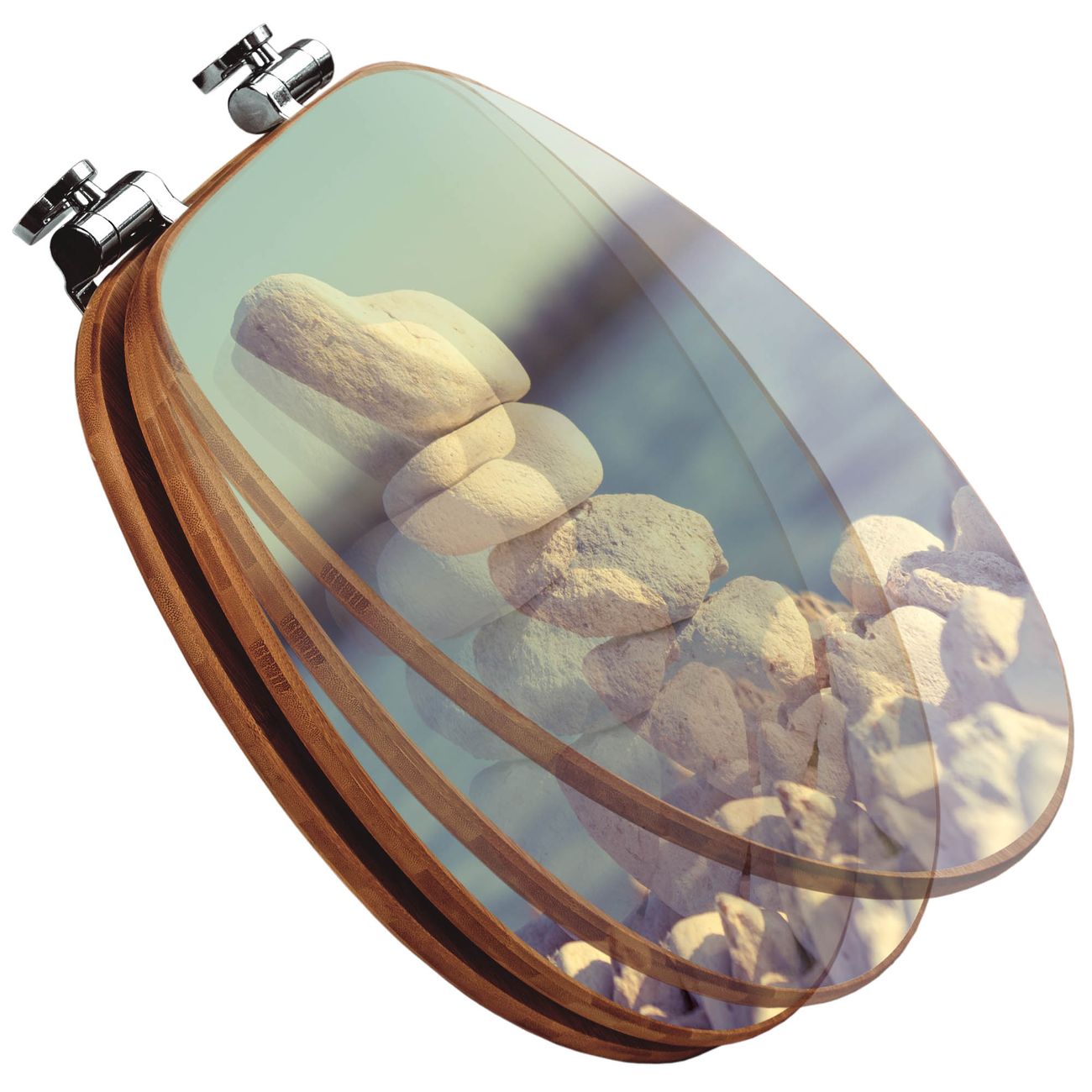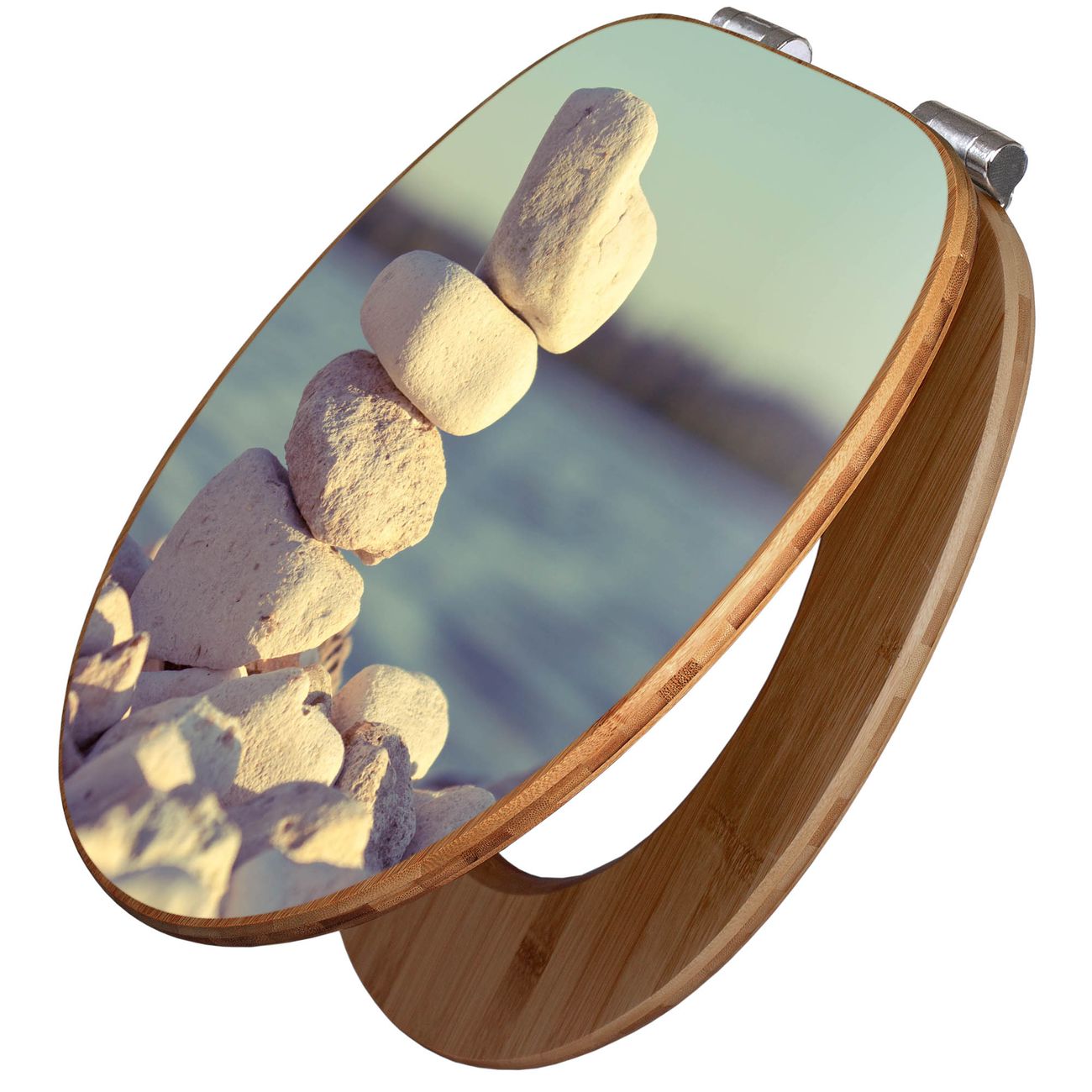 Design WC-Sitz Bambus Absenkautomatik Motiv Leichte Steine