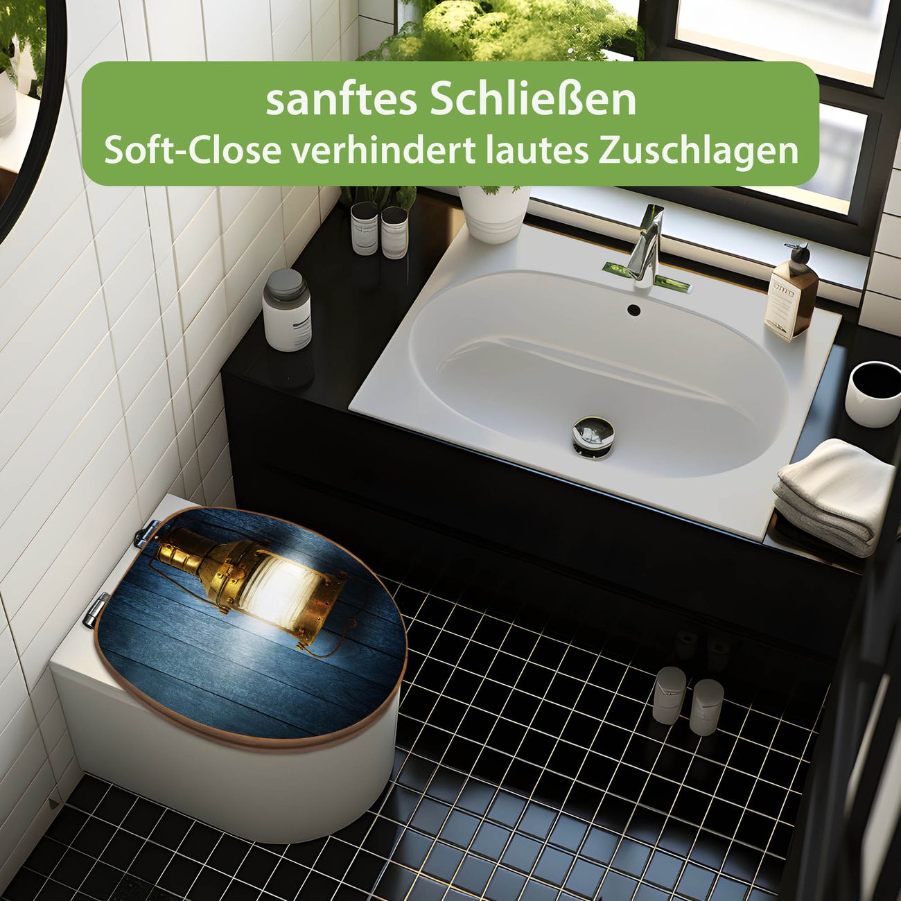 Design WC-Sitz Bambus Absenkautomatik Motiv Leuchte