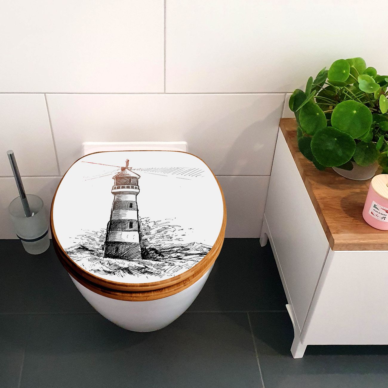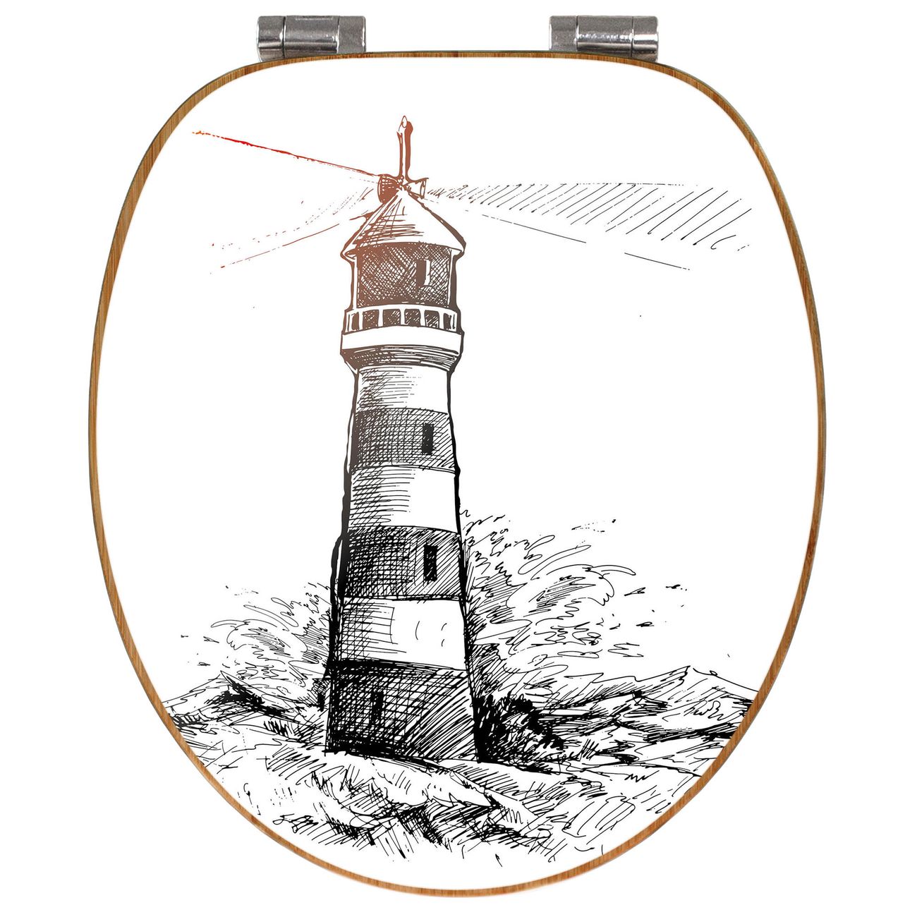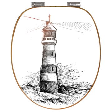 Design WC-Sitz Bambus Absenkautomatik Motiv Leuchtturm in der Brandung