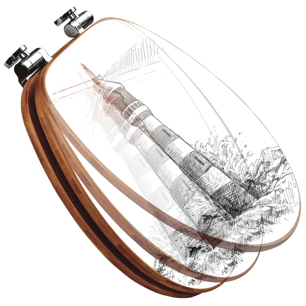 Mit dem banjado Toilettensitz in Bambus verbinden Sie Design und Funktionalität. Sie erhalten den WC-Sitz mit bewährter Holz Qualität und Universal Scharnieren. Das Motiv Motiv Leuchtturm in der Brandung besteht aus einer schutzlaminierten Motivfolie, die durch das Schutzlaminat zusätzlich vor Kratzern schützt. Durch diesen Motivdruck wird der WC-Sitz zu einem Blickfang in Ihrem Bad.