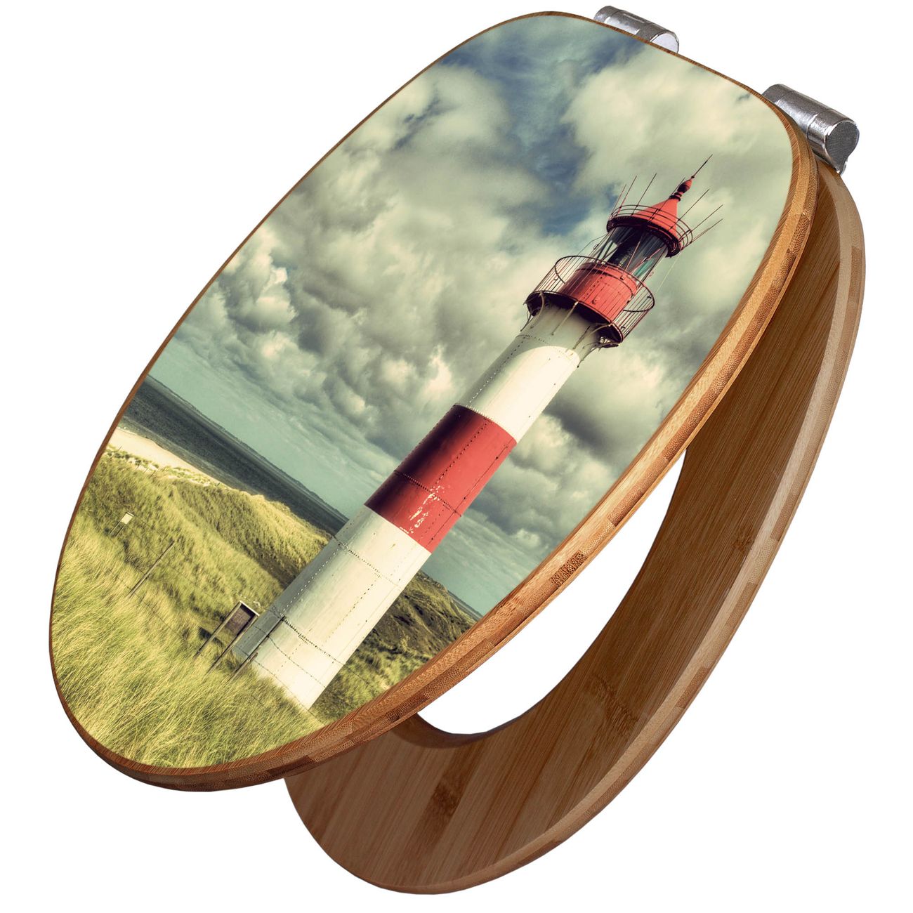 Design WC-Sitz Bambus Absenkautomatik Motiv Leuchtturm Sylt