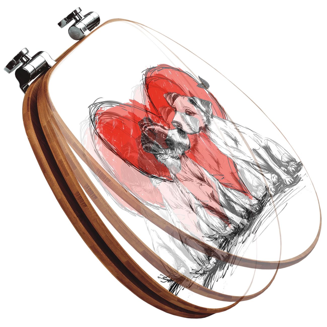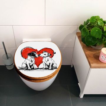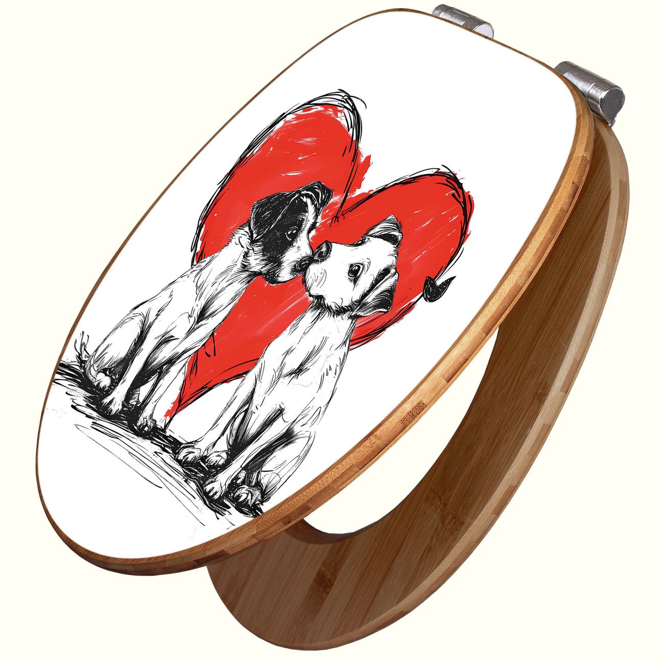 Design WC-Sitz Bambus Absenkautomatik Motiv Liebende Hunde