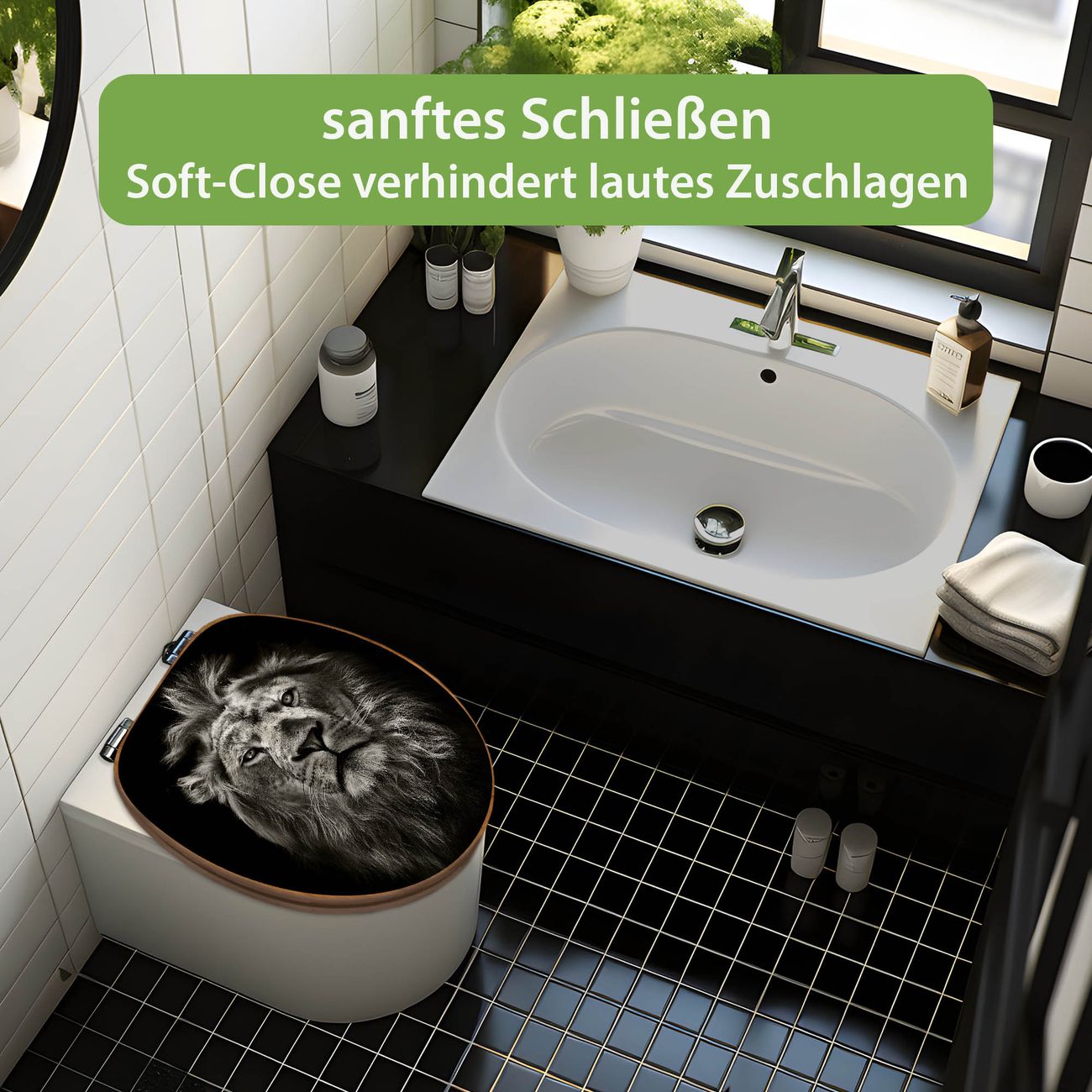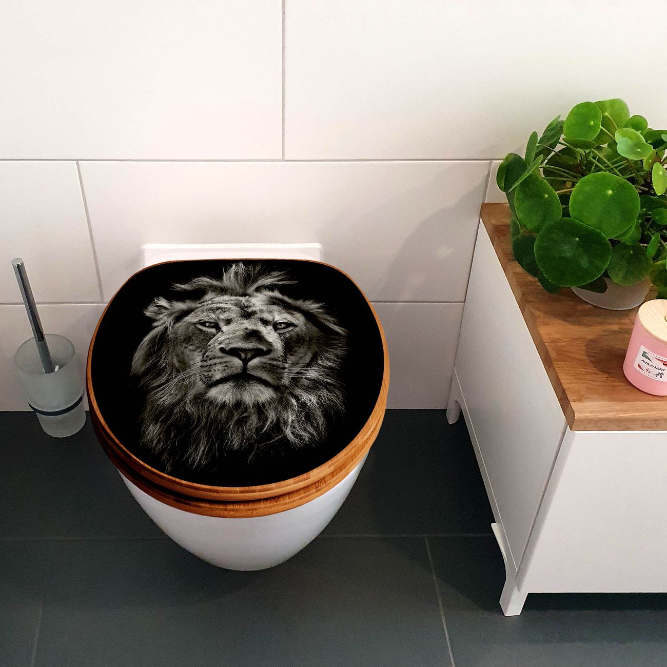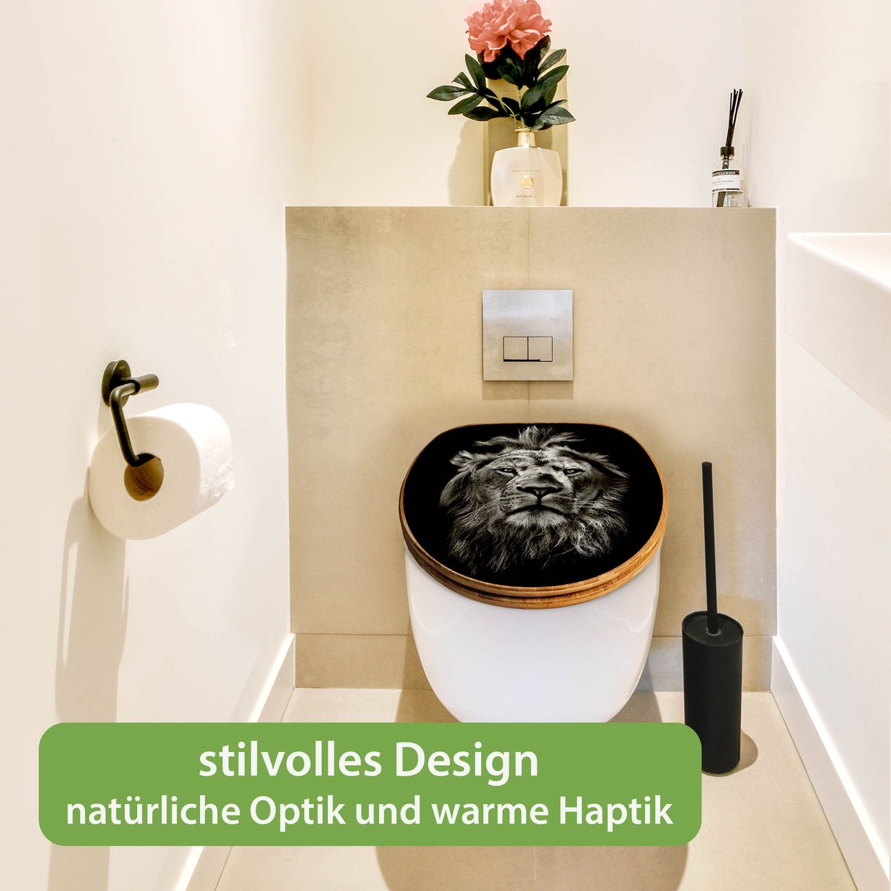 Design WC-Sitz Bambus Absenkautomatik Motiv Löwe Porträt