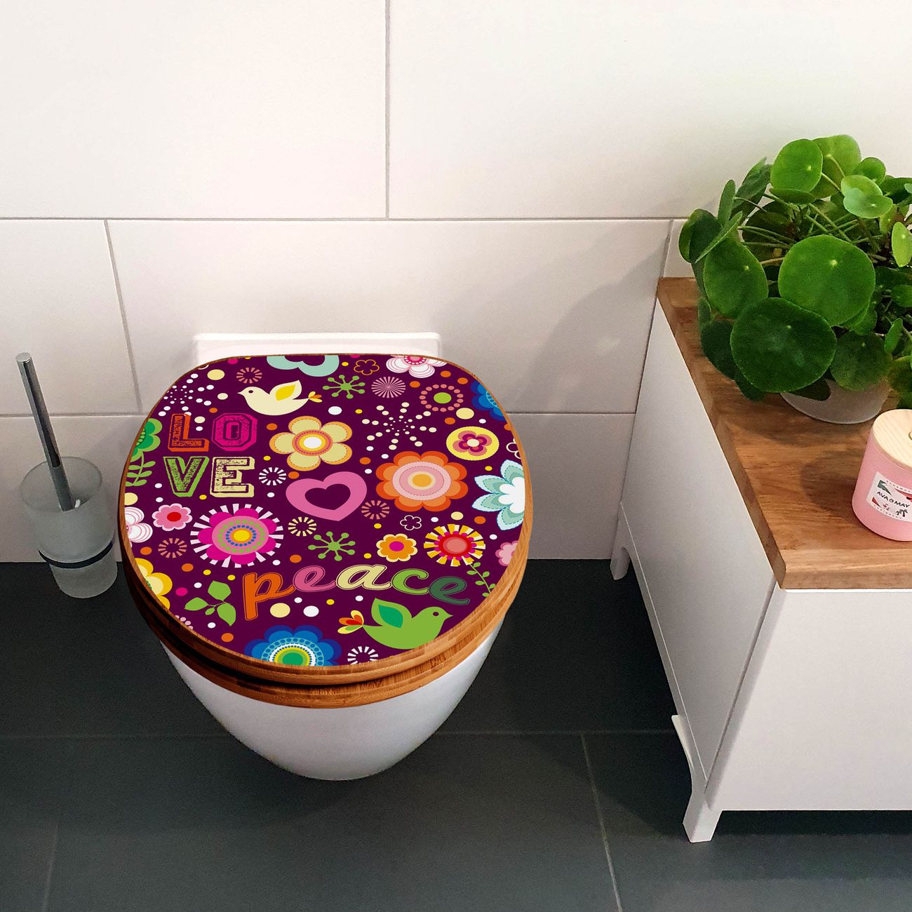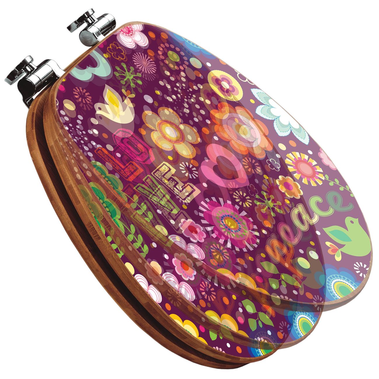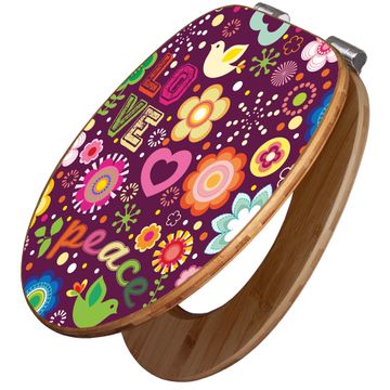 Design WC-Sitz Bambus Absenkautomatik Motiv Love and Peace