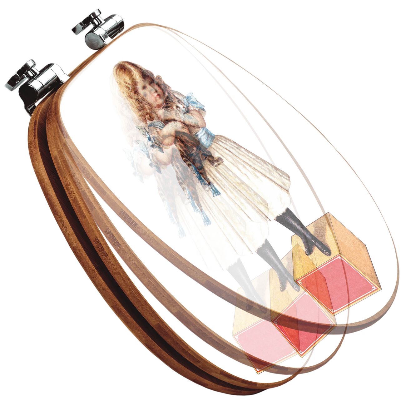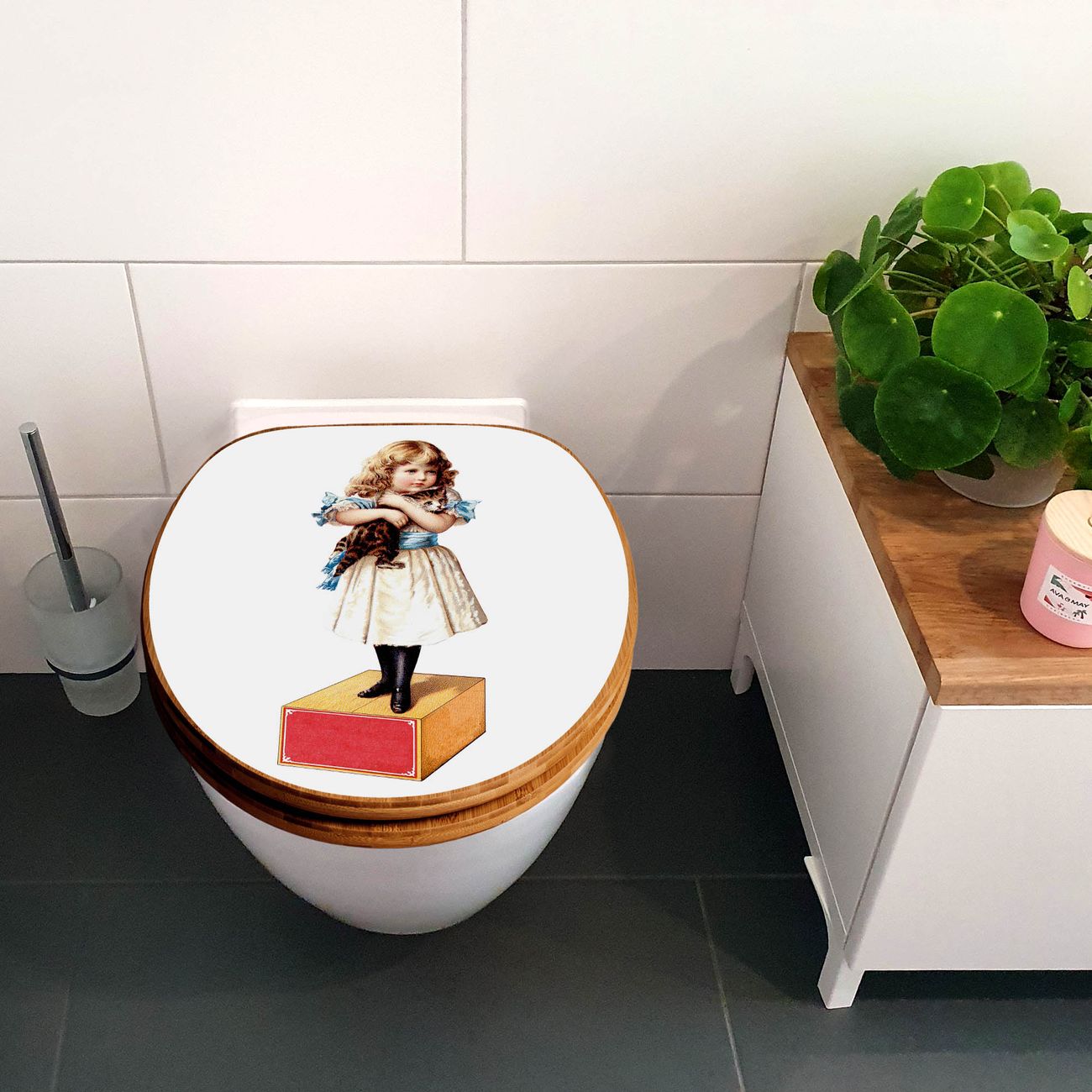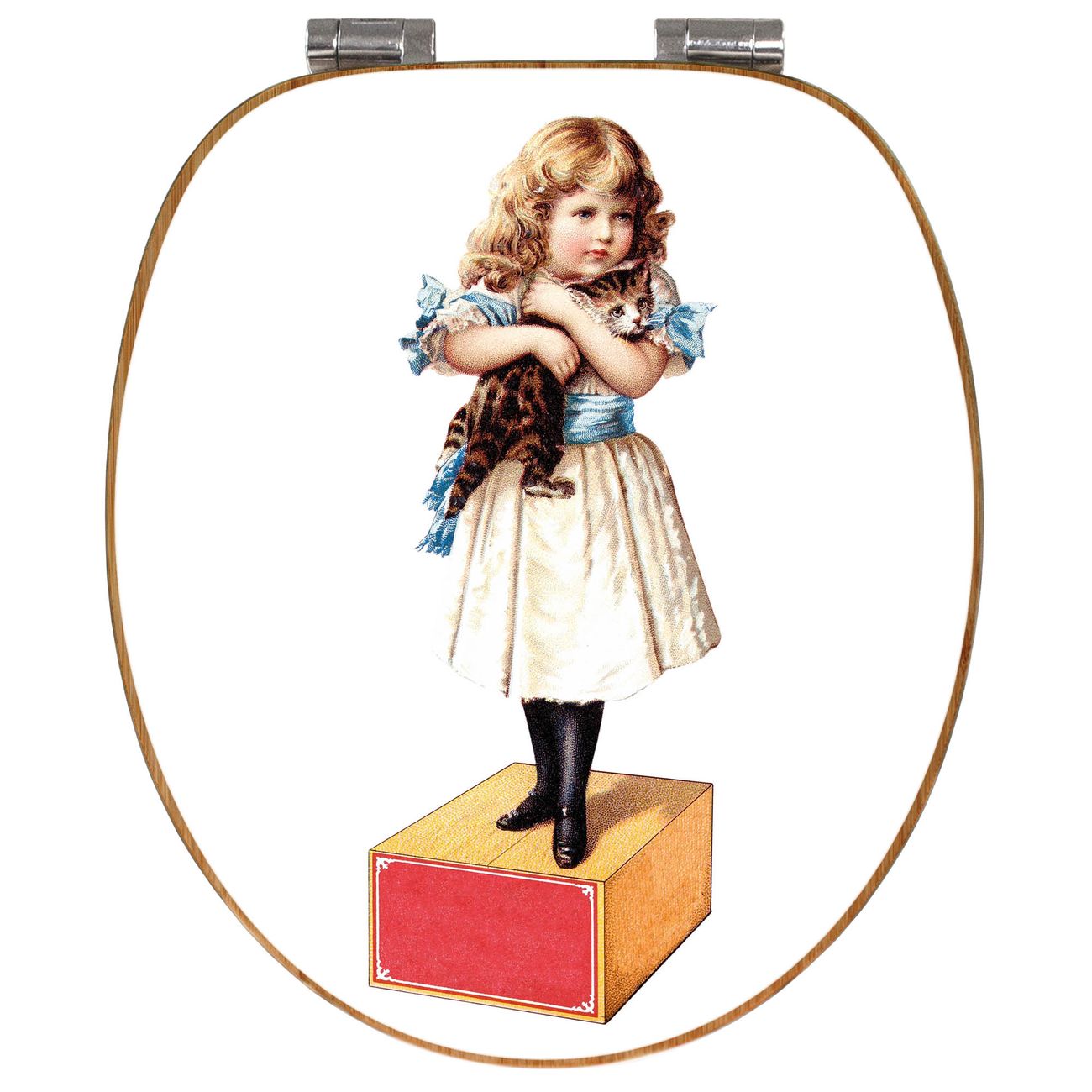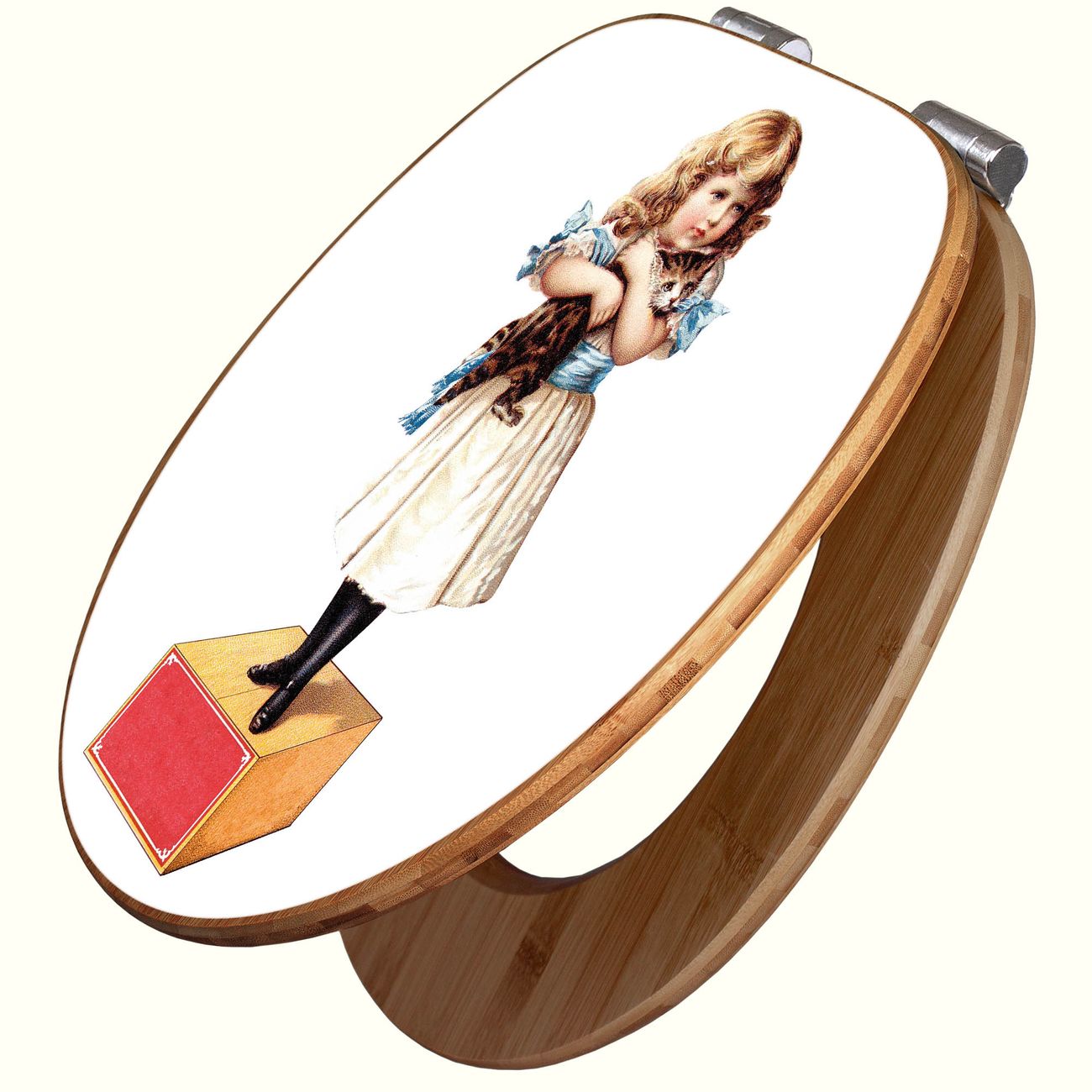 Design WC-Sitz Bambus Absenkautomatik Motiv Mädchen mit Katze Vintage