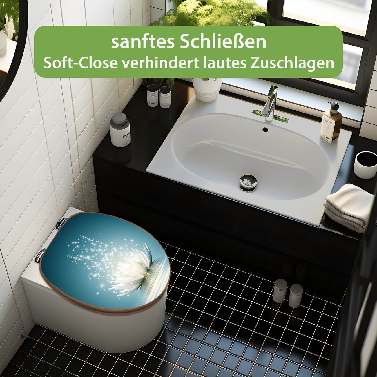 Design WC-Sitz Bambus Absenkautomatik Motiv Magische Lotusblüte
