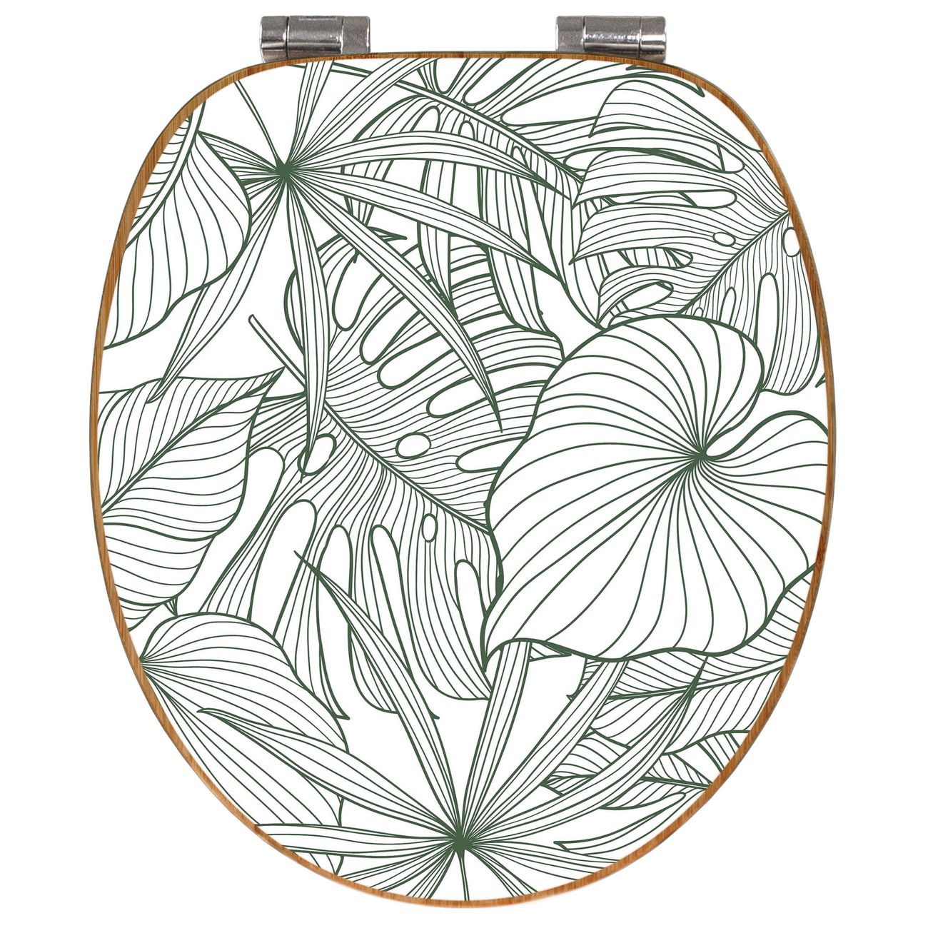 Mit dem banjado Toilettensitz in Bambus verbinden Sie Design und Funktionalität. Sie erhalten den WC-Sitz mit bewährter Holz Qualität und Universal Scharnieren. Das Motiv Motiv Monstera 2 besteht aus einer schutzlaminierten Motivfolie, die durch das Schutzlaminat zusätzlich vor Kratzern schützt. Durch diesen Motivdruck wird der WC-Sitz zu einem Blickfang in Ihrem Bad.