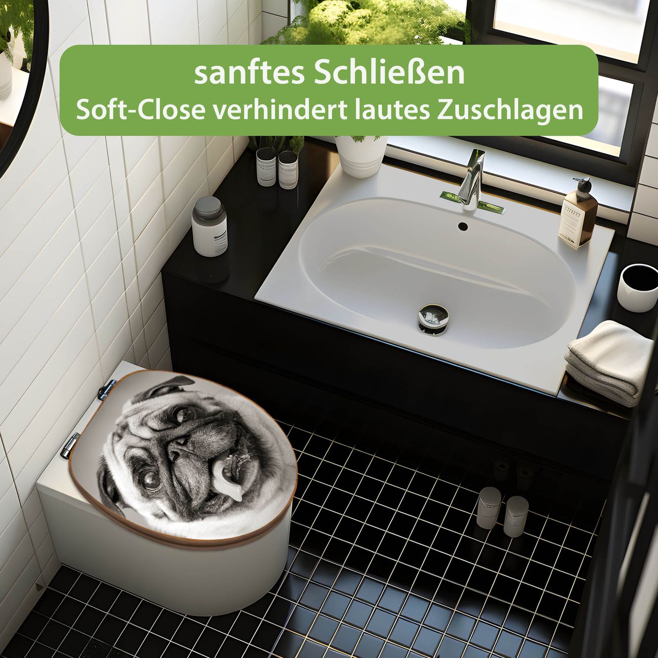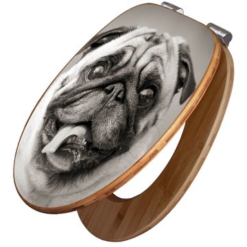 Design WC-Sitz Bambus Absenkautomatik Motiv Mops Porträt